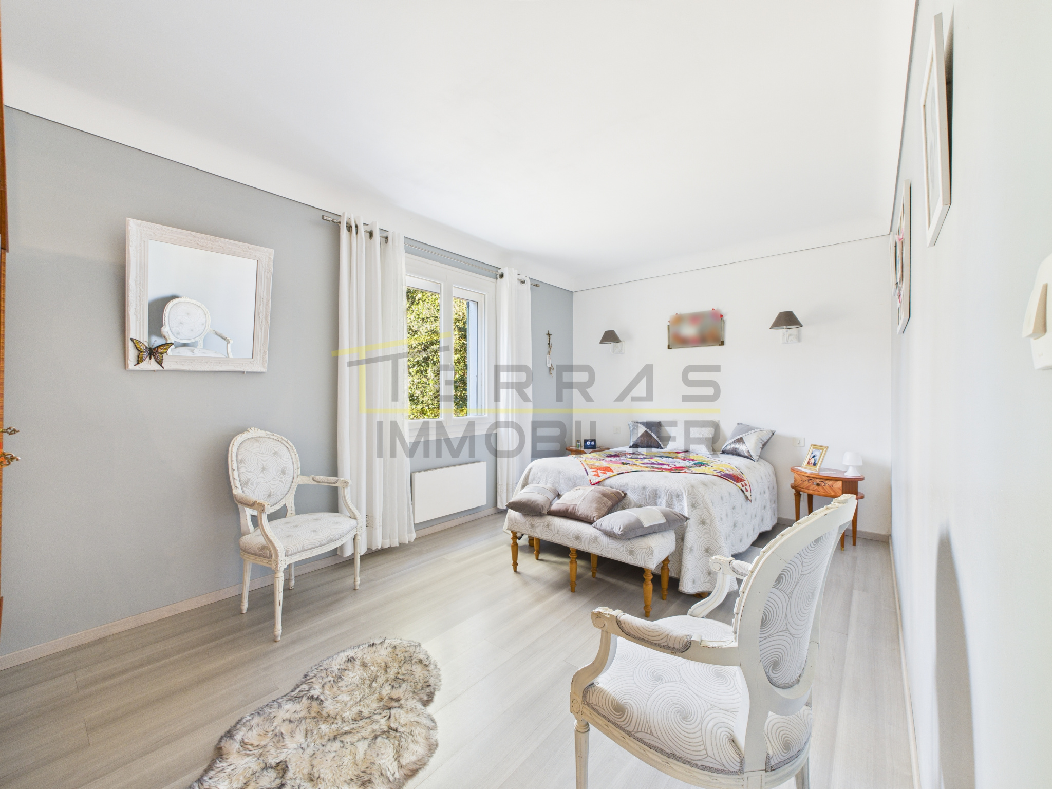 A Grignan, dans quartier résidentiel, maison d'environ 152 m2 comprenant: Hall d'entrée, cuisine aménagée s'ouvrant sur véranda, salon/séjour avec cheminée, 3 chambres, salle de bains et WC. Un studio indépeandant vient compléter ce bien. Garage en sous-sol. Chauffage par pompe à chaleur Air/Eau + climatisation reversible. Le tout édifié sur un terrain clos et arboré d'une contenance de 2504m2, constructible.
