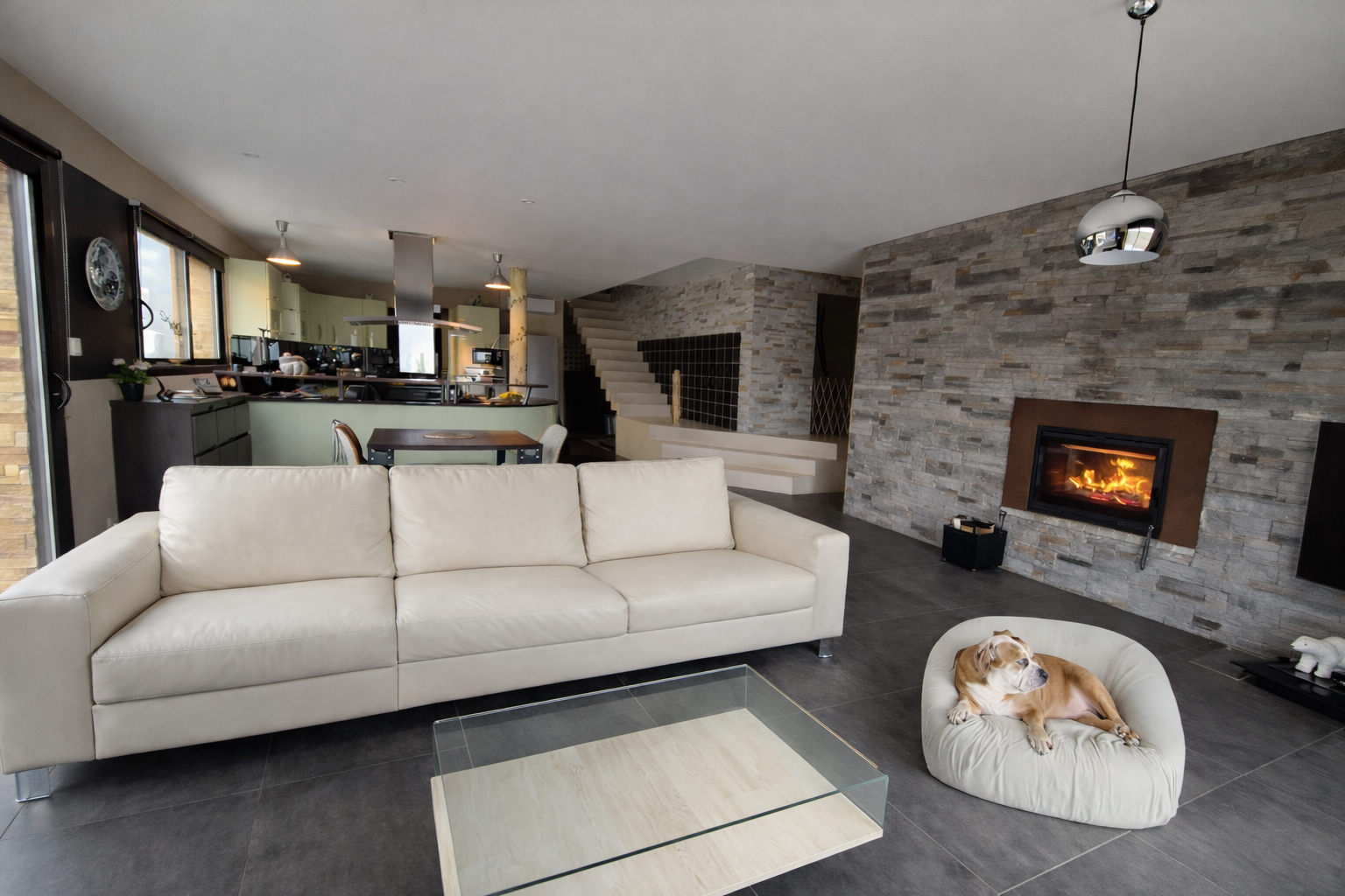 Confort : chauffage au sol pompe à chaleur réversible (chauffage et climatisation) insert bois.