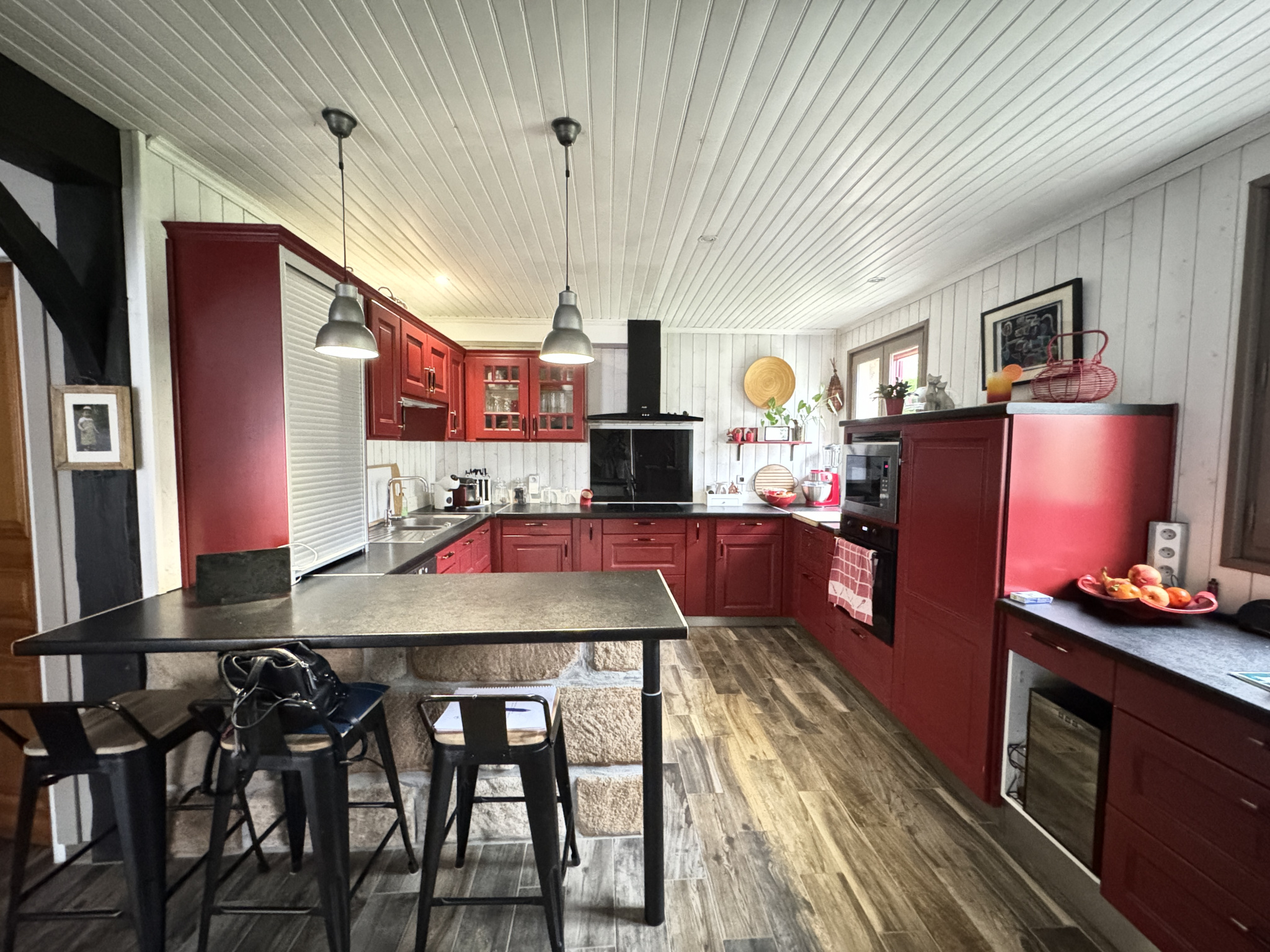 En rez de chaussée, une grande pièce ouverte avec cuisine entièrement équipée et aménagée, un salon indépendant de 35 m2.