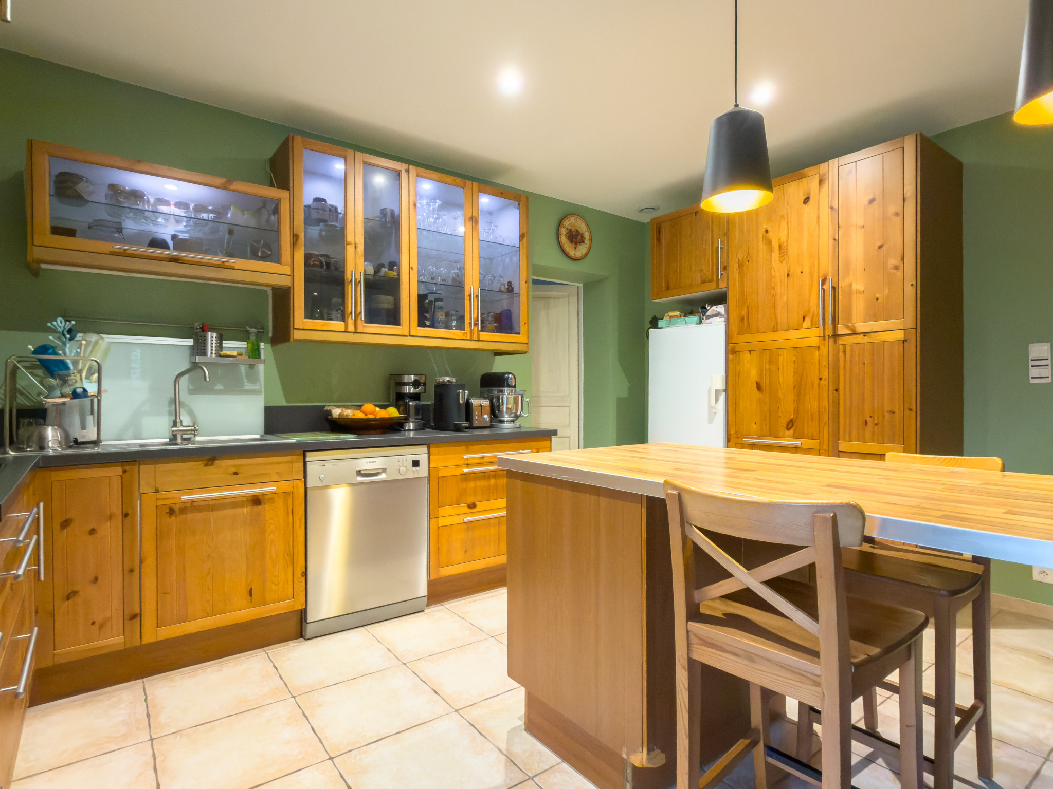 La pièce de vie se compose d'un séjour salle à manger d'environ 32 m2 environ, lumineux et ouvert sur l'extérieur, complété par une cuisine indépendante d'environ 16 m2 environ.