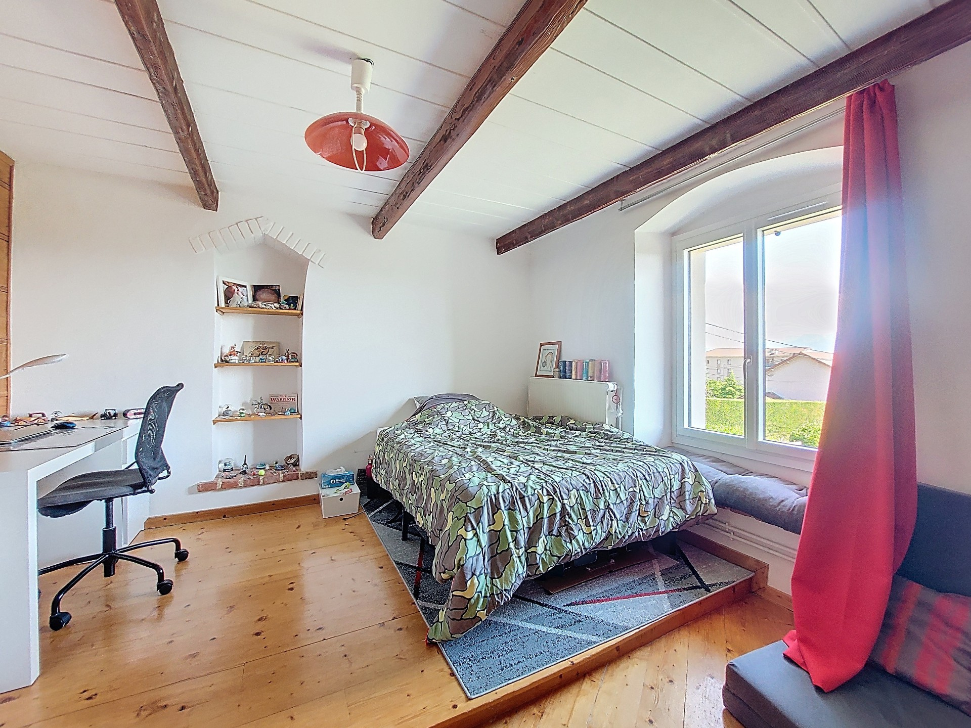 Avec ses quatre grandes chambres, sa cuisine ouverte sur le séjour et son salon cosy avec poêle à bois, cette maison est un véritable cocon. Mais ce n'est pas tout ! Vous bénéficiez également d'un garage de 37 m2, d'un atelier, d'un cellier et d'une buanderie.