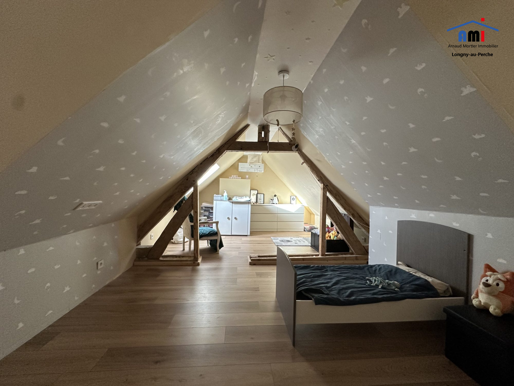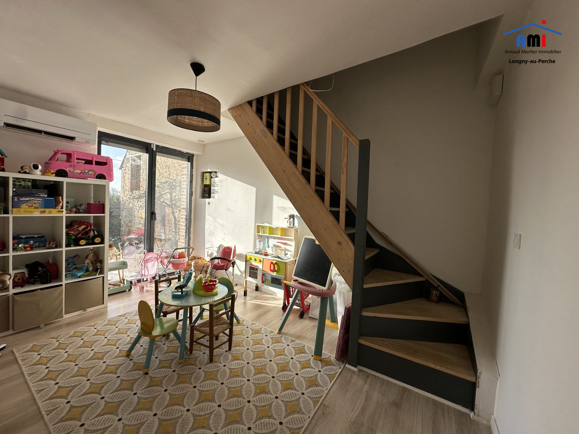 A 10min du village de Longny-au-Perche, en hameau calme, l'agence AMI vous propose à la vente une maison ancienne rénovée de près de 125m² habitables sur plus de 7600m² de terrain avec dépendances. La maison offre au rez de chaussée : une cuisine aménagée et équipée ouverte sur la salle à manger (37.6m²) avec accès à la terrasse, à la suite, un salon avec poêle à bois (24.5m²), une salle de bains avec WC (9.2m²) un espace bureau, salle de jeu ou chambre (12m²). A l'étage, d'un côté, une chambre (9.5m²) et de l'autre, un palier, une salle d'eau avec WC et 2 chambres mansardées (12.9m² et 6m²(10m² au sol)). Chauffage par pompe à chaleur air/air et poêle à bois, fenêtres en double vitrage, toiture 2020.Montant estimé des dépenses annuelles d'énergie pour un usage standard entre 1 440? et 2 040? par an. Prix moyen des énergies indexés sur les années 2021, 2022 et 2023. Quelques travaux de finition sont à prévoir. Dépendance en pierres de 22.6m² au sol avec grenier, dépendance à usage de garage et d'atelier en bois de 100m² environ, et autre bâtiment en bois.