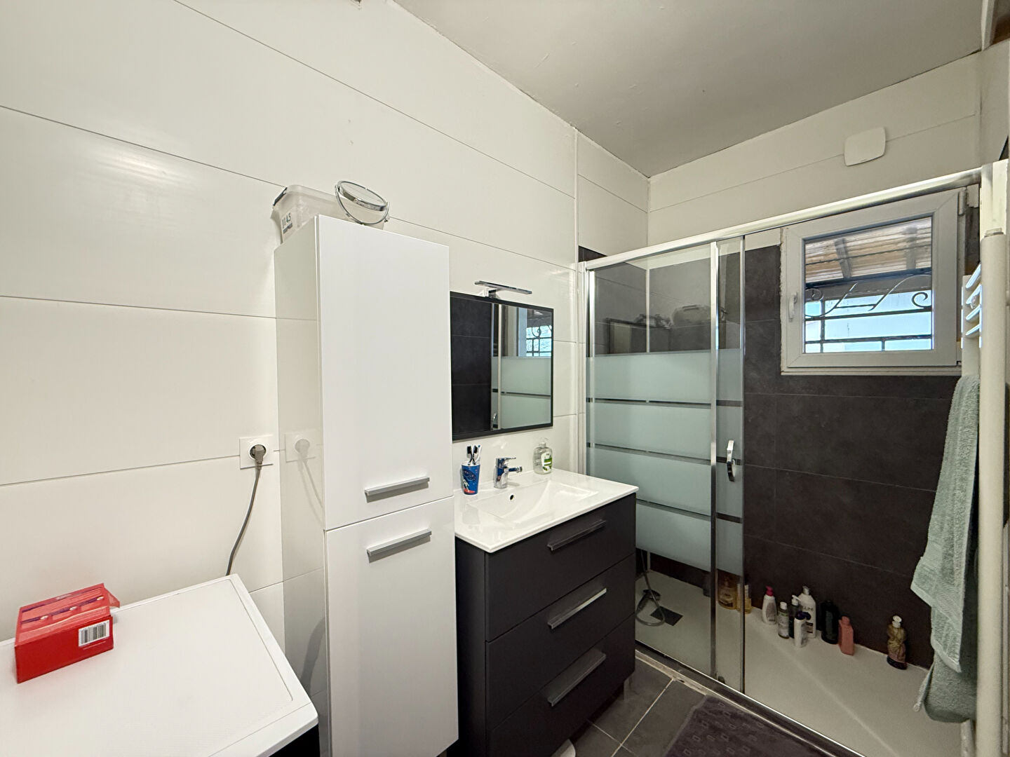 Un dégagement mène à une salle d'eau ainsi qu'à un WC indépendant.