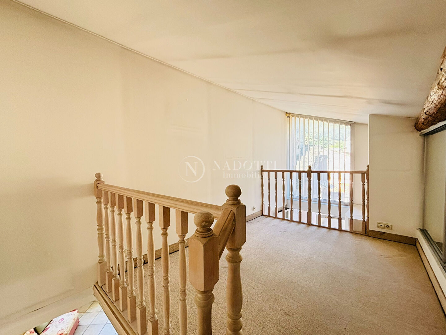 Une mezzanine surplombe le salon et peut faire l'objet d'un espace bureau, d'une chambre d'appoint.