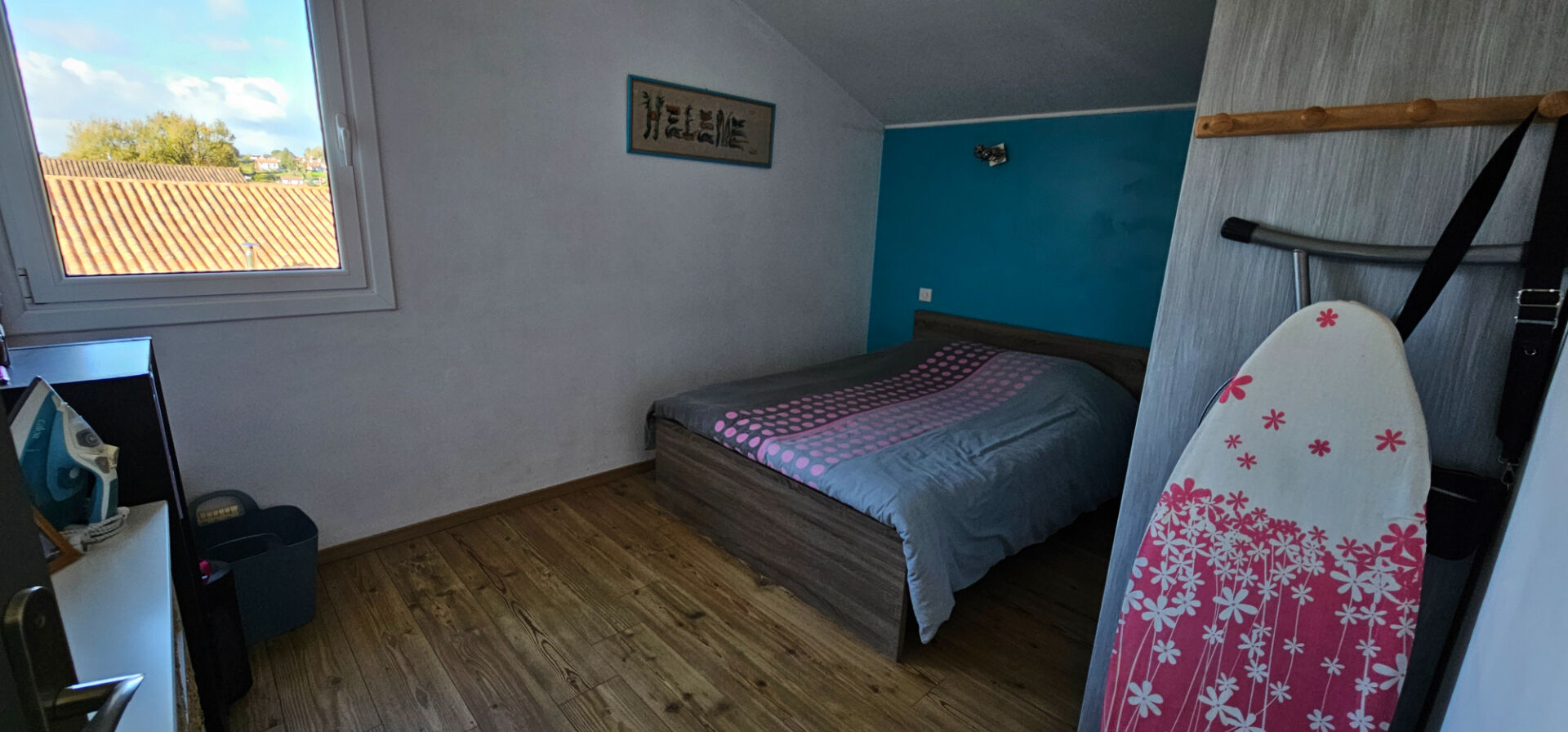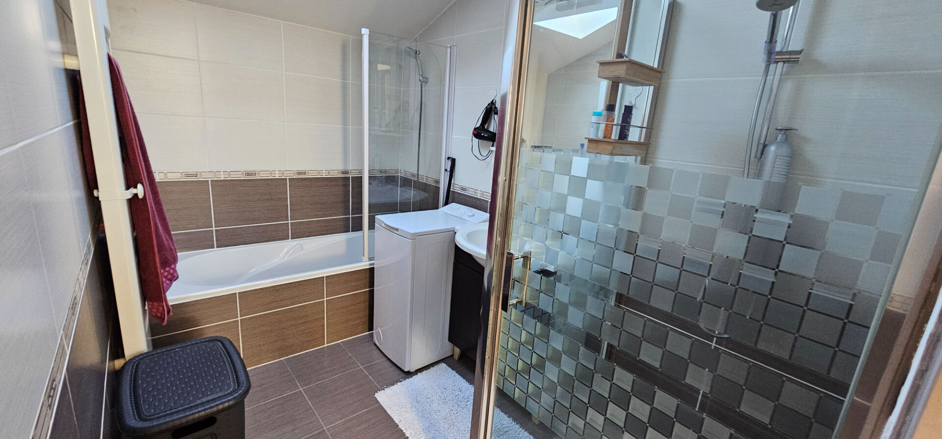 À l'étage, la maison dispose de 2 chambres, d'une salle de bain moderne et d'un WC indépendant.