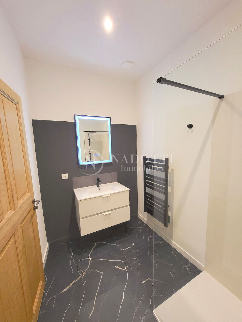 L'espace nuit se compose d'une chambre spacieuse et confortable, propice au repos. La salle d'eau moderne dispose d'une élégante douche à l'italienne, aux finitions soignées. Entièrement climatisé, l'appartement assure un confort optimal en toute saison.