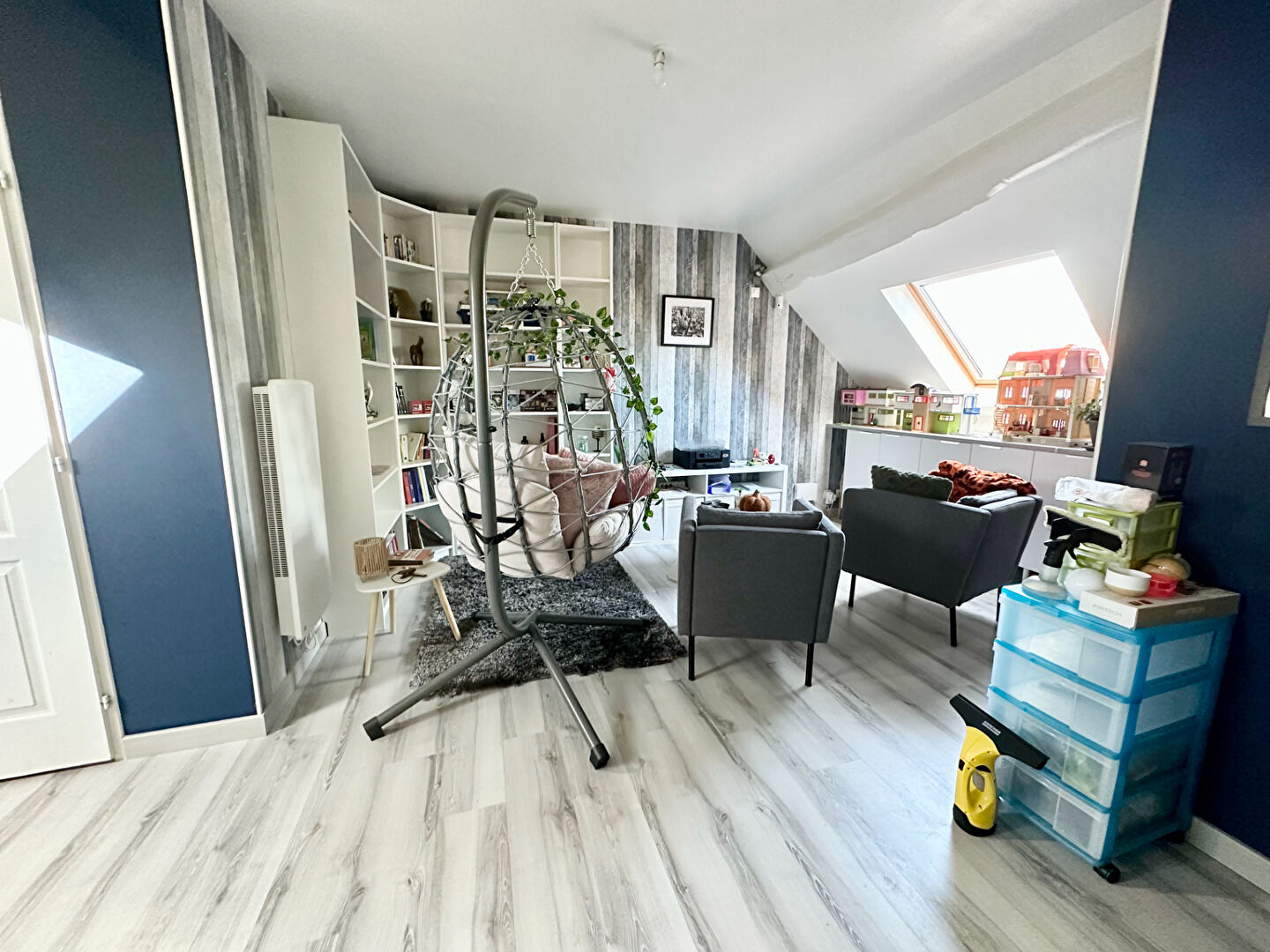 Coté étage : 2 grandes chambres et un petit salon idéal pour les enfants,