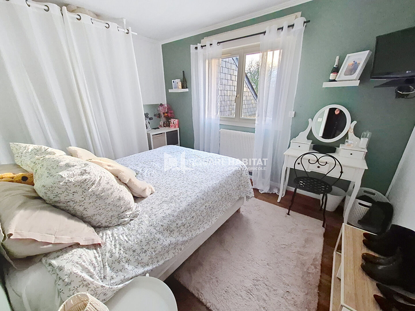 La maison est implantée sur un jardin clos et arborée de 988m² environ.