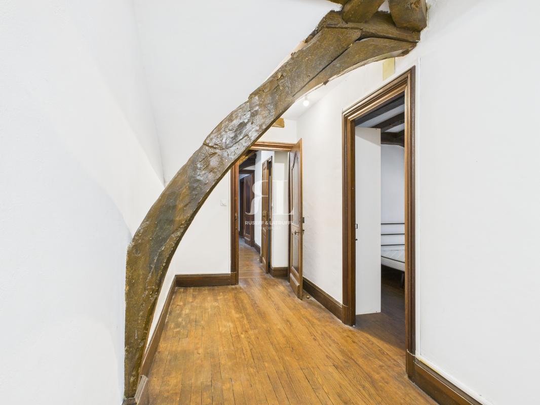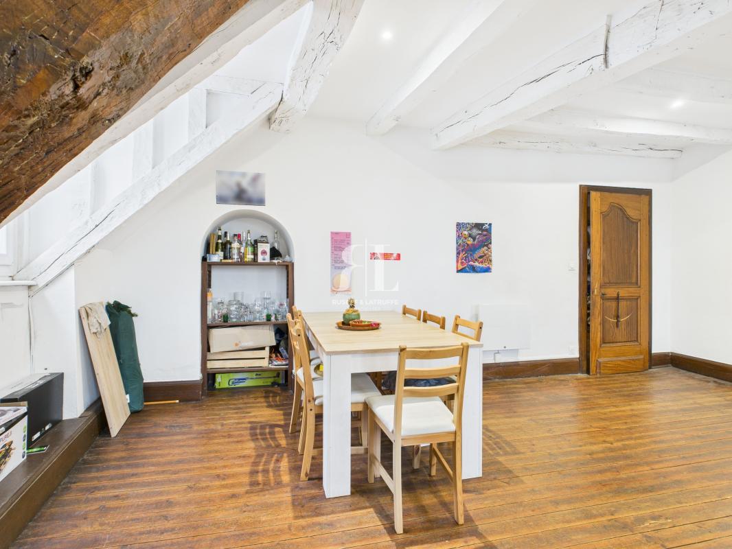 L'appartement se compose d'une entrée, d'un séjour commun avec cheminée, d'une cuisine aménagée et équipée, de quatre chambres, d'une salle de bains avec WC et d'un WC séparé, assurant une utilisation fluide pour les colocataires. Une cave complète le bien.