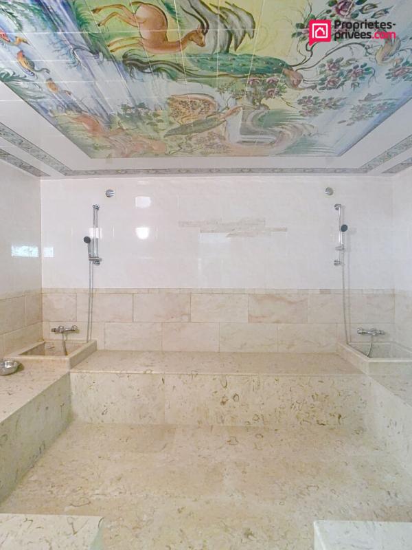 Il y a un grand bureau de 40 m² avec deux baies vitrées, un Hammam-Sauna, une salle de gym, une buanderie.