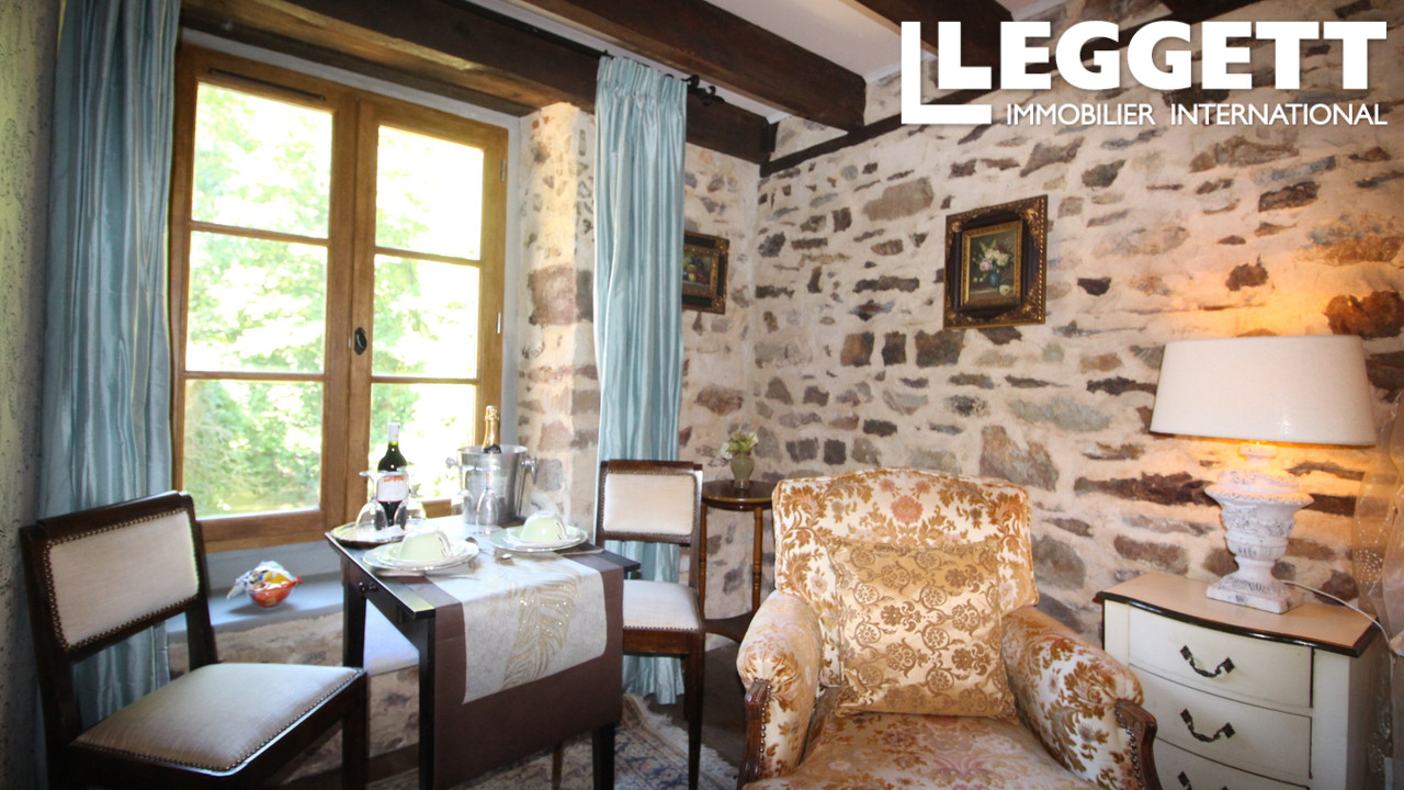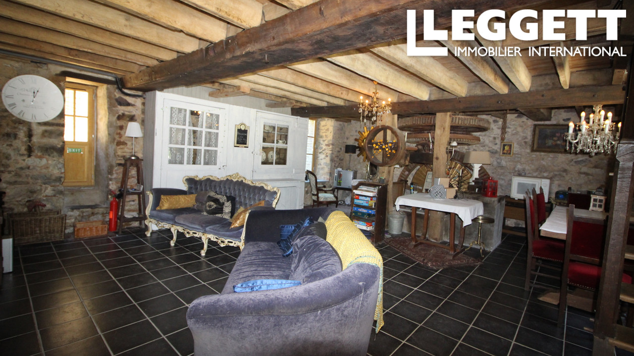 A42212DSE53 - Ce pittoresque moulin à eau du XVIIe siècle se niche au coeur de jolis jardins, en bordure de rivière. Cette charmante propriété comprend une maison principale, un gîte de deux chambres et deux chambres aménagées dans le moulin, idéales pour une activité de chambres d'hôtes. S'y ajoutent des écuries et un terrain pour les chevaux. Un excellent potentiel commercial dans un cadre idyllique.