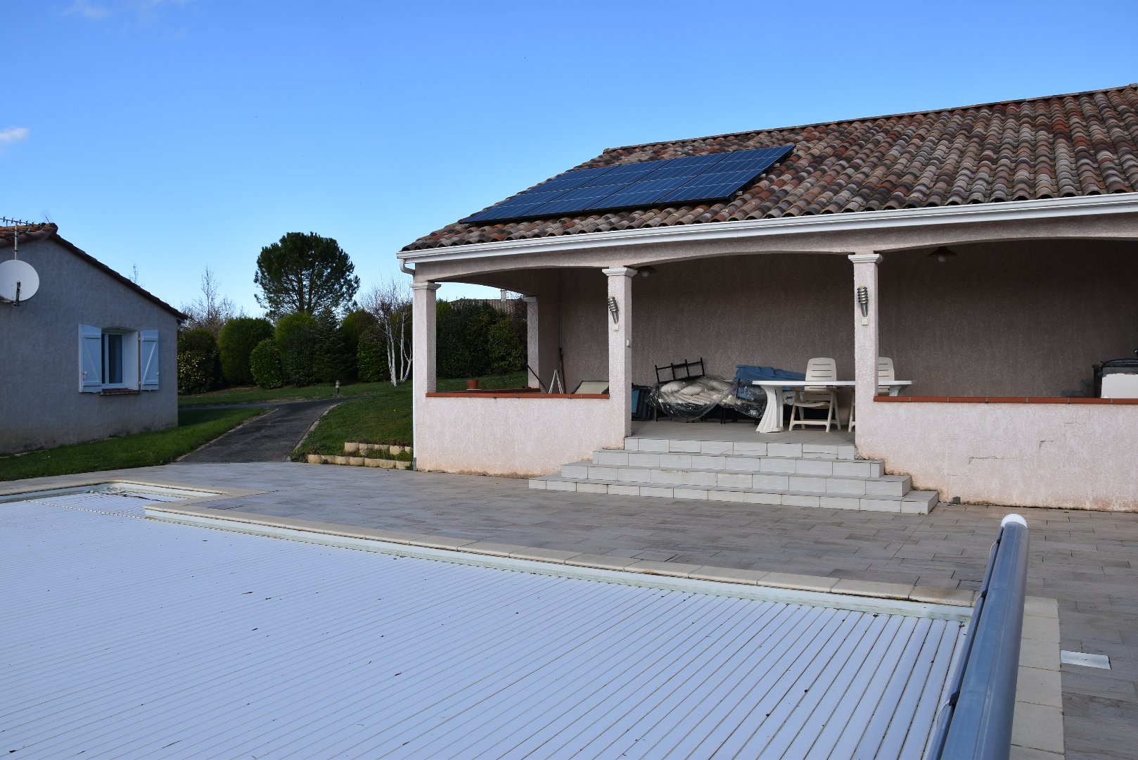Avec une vue panoramique sur les Pyrénées, une piscine Bio UV, une grande dépendance avec pool house, cuisine d'Eté et vaste garage atelier, cette belle maison T5 offre une grande pièce de vie avec poêle à bois, 4 chambres (dont 2 en rez de chaussée), 2 bains, et un vaste sous sol avec buanderie, cave à vins, espace garage.