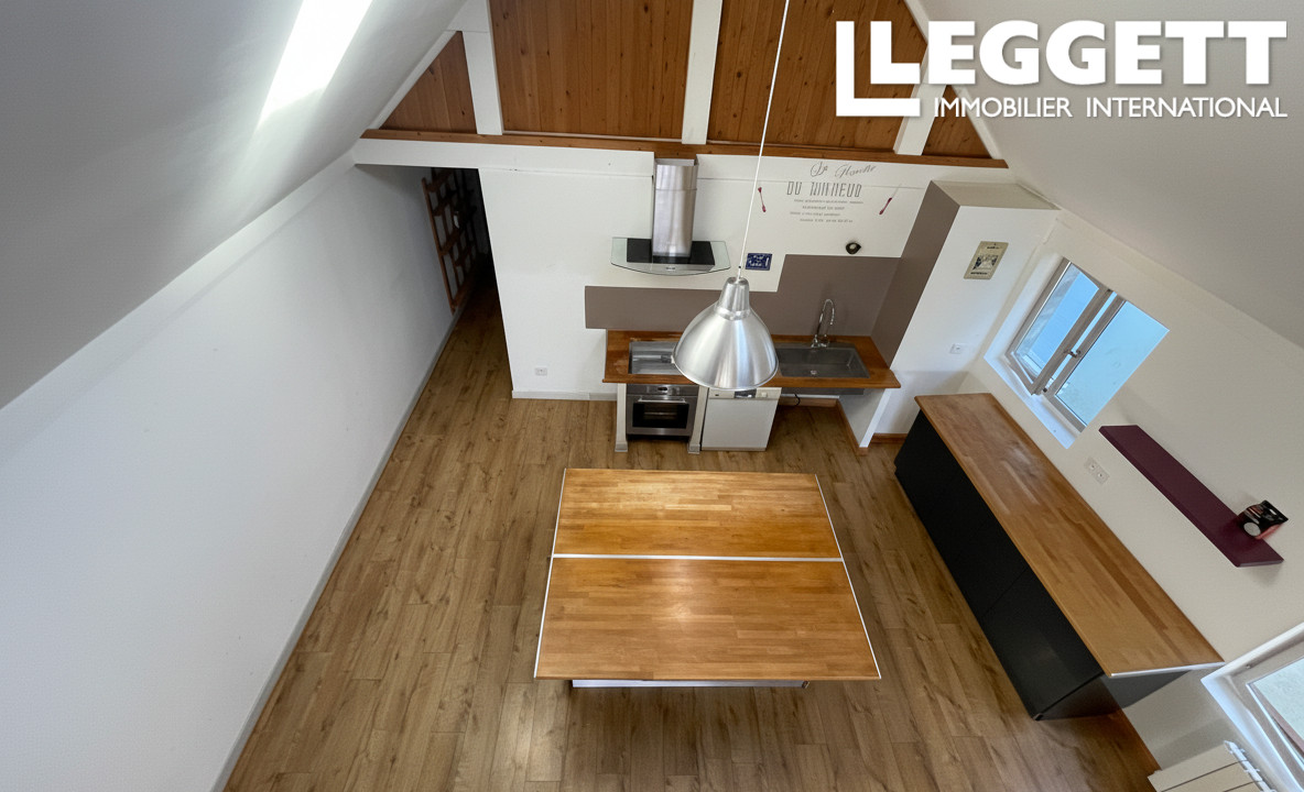 A42111SPR50 - Leggett Immobilier International vous propose ce charmant duplex de 84 m²(105 au sol), situé en plein centre de Portbail-sur-Mer (Manche, Normandie, France), à proximité immédiate des commerces, du marché, du havre et de la plage. Au 1er étage d'une petite copropriété (1 seul autre propriétaire), cet appartement lumineux de style loft séduit par sa grande pièce de vie de 51 m², son toit cathédrale, ses poutres apparentes et sa cuisine aménagée avec îlot central. Il comprend 2 chambres bien séparées, chacune avec son propre escalier, dont une offrant une vue partielle sur le havre et l'église Notre-Dame, une salle d'eau, WC séparés et rangements. Emplacement recherché : à 1 minute à pied du havre et du pont des 13 arches et de tous les commerces , à quelques minutes du port et des plages. Idéal premier achat, pied-à-terre ou investissement. Atouts : o Pas de charges de copropriété o Double vitrage o Stationnement gratuit dans la rue.