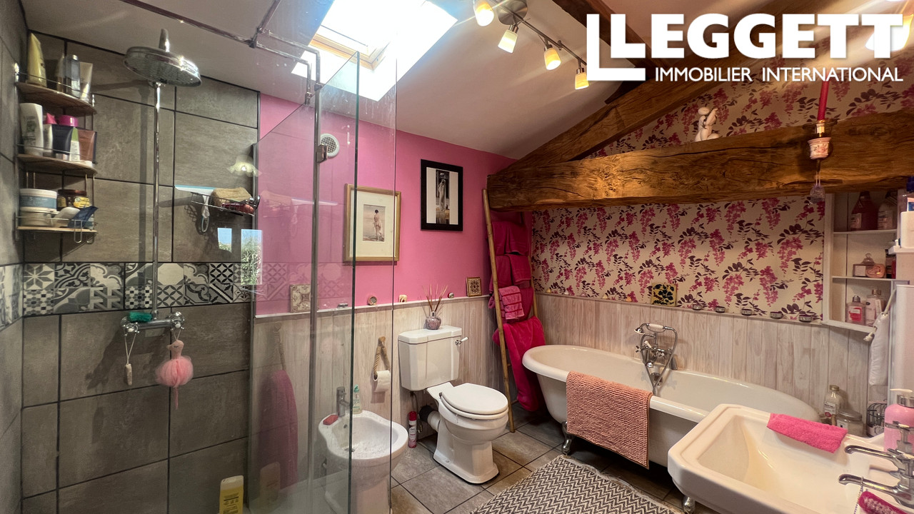 La partie d'origine comprend une cuisine de campagne chaleureuse avec poêle à bois, une buanderie et trois chambres, tandis que la grange propose deux chambres supplémentaires dont une avec salle d'eau attenante. À l'extérieur, vous profiterez d'une piscine avec terrasse et bar, d'un jardin arboré avec vue dégagée sur la campagne, d'une grange attenante idéale pour un atelier ou un espace créatif, ainsi que d'un ancien séchoir à tabac indépendant.
