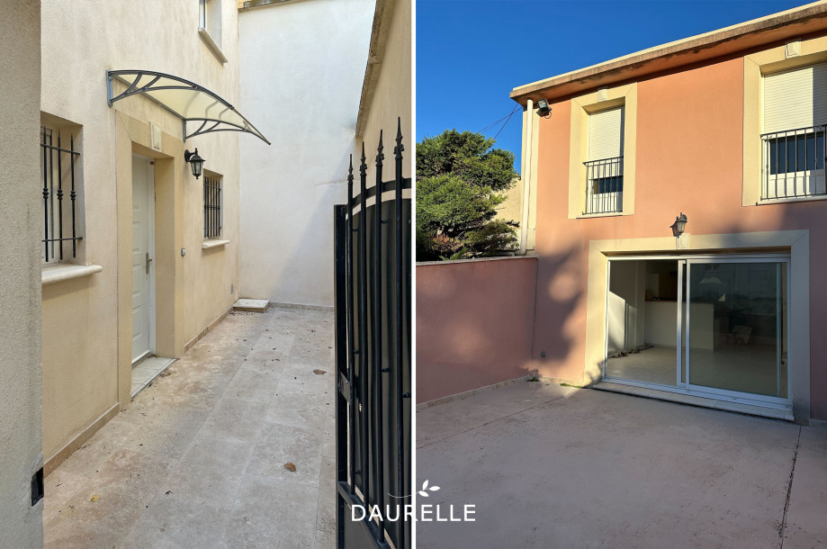 Une première cour privative de 11 m2 dessert l'appartement qui accueille, en rez-de-chaussée, la pièce de vie avec cuisine aménagée, un cellier buanderie et un wc.
