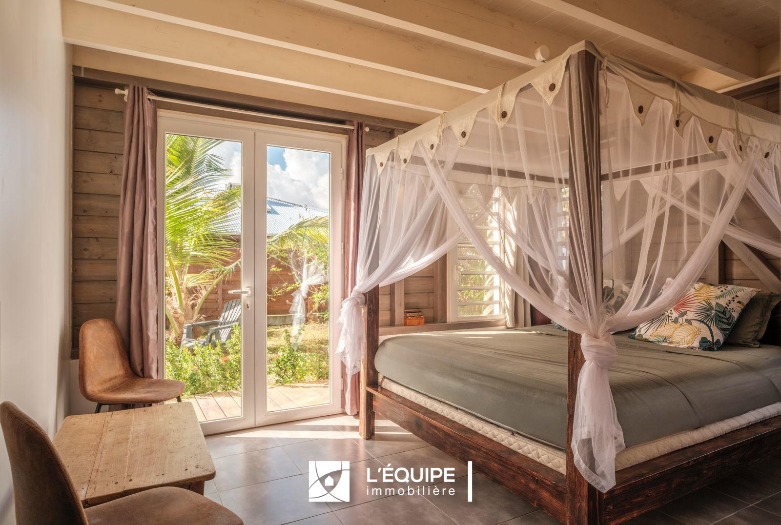 Idéalement située à deux pas des plages du Sud de l'île et des grands axes routiers, cette maison atypique de 95 m2 séduit par sa charpente apparente, ses espaces largement ouverts sur l'extérieur favorisant la ventilation naturelle, et sa parfaite intégration dans la nature.