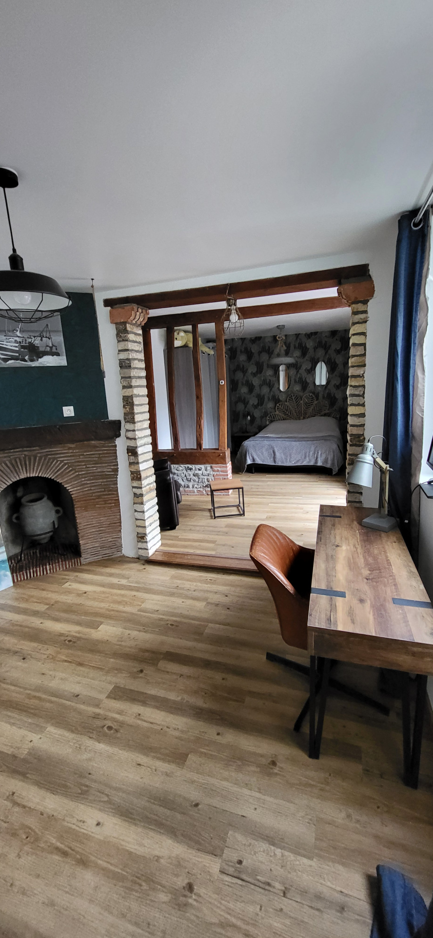 MAISON HABITABLE DE PLAIN PIED AVEC CHARMES COMPRENANT : AU REZ DE CHAUSSEE : Entrée, séjour-salon, cuisine équipée, 1 chambre, salle d'eau, wc, bureau