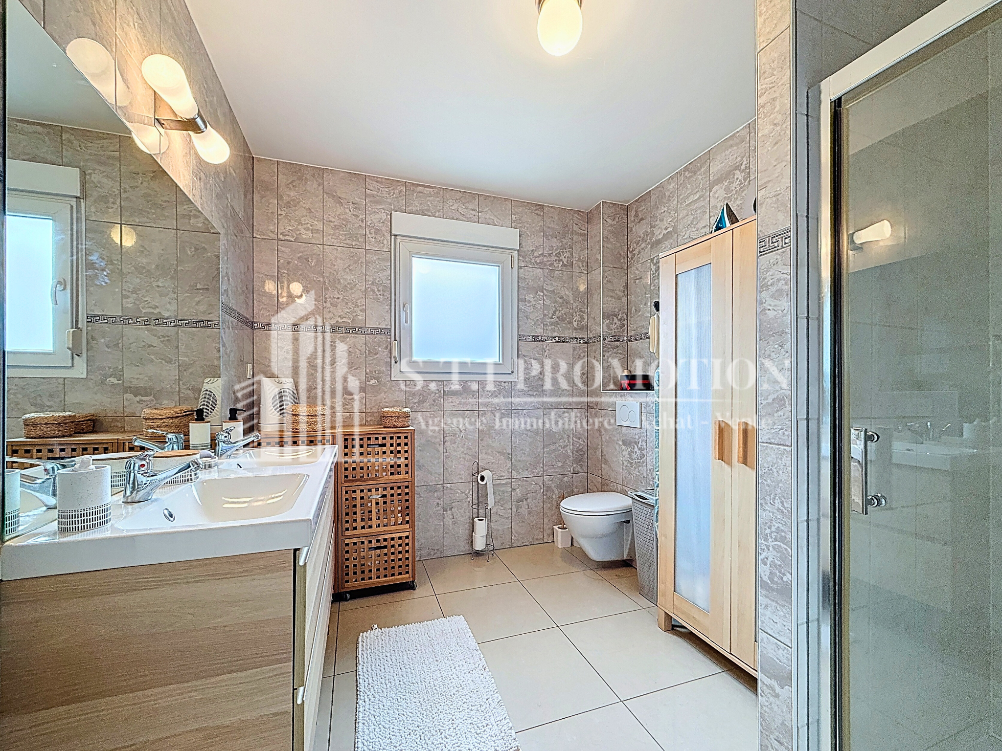 Maison individuelle de plain-pied dans un secteur résidentiel prisé, vaste pièce de vie avec cuisine ouverte, accès terrasse, quatre chambres, garage double, terrain agréable, chauffage au sol, aucun travaux à prévoir, bien rare à Mont-Saint-Martin Piedmont !