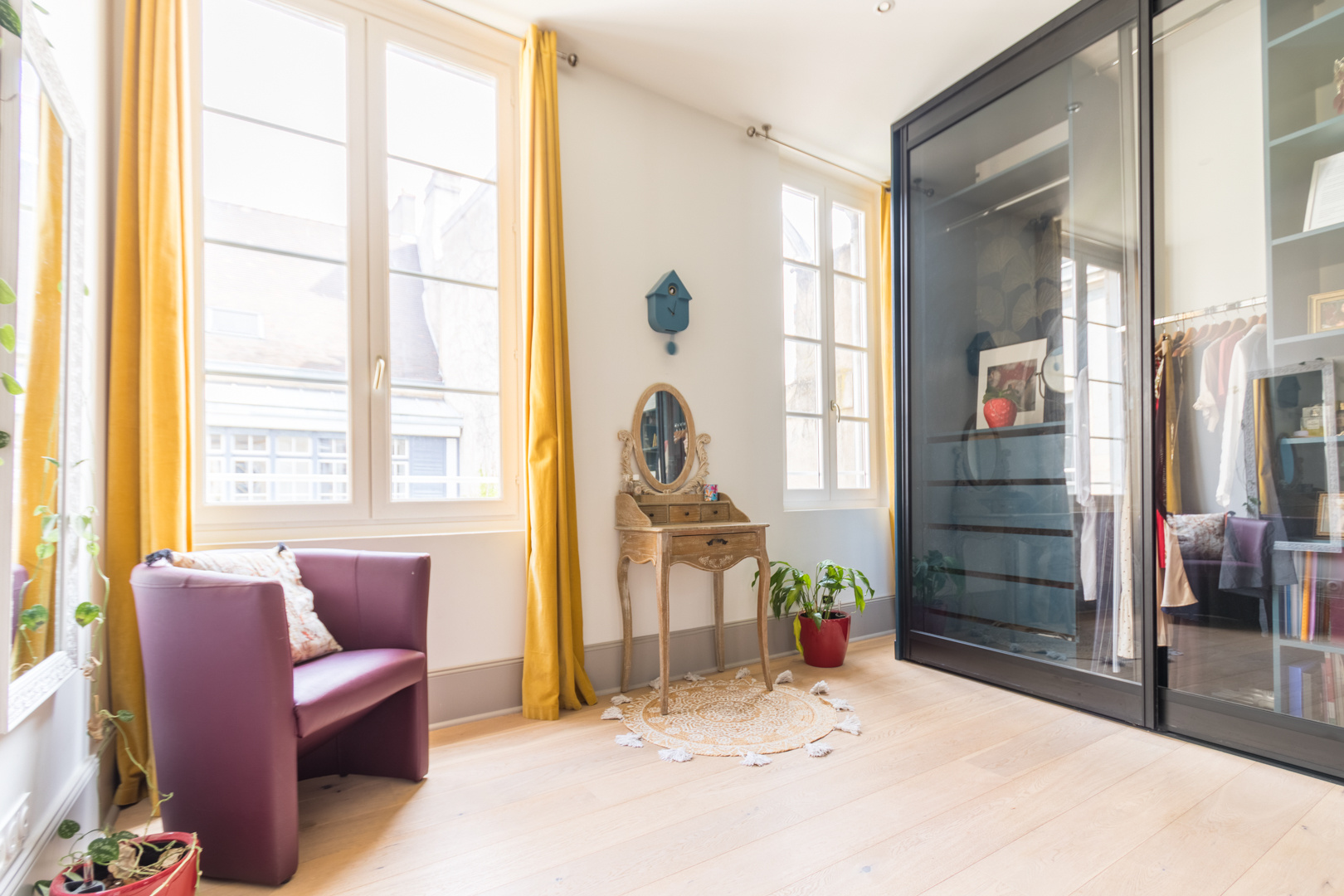 A l'étage, l'appartement offre deux chambres, dont une avec dressing, ainsi qu'une seconde salle de douches, apportant confort et fonctionnalité à cet espace nuit. Une bien rare, parfait pour une famille ou un projet de résidence principale au calme.