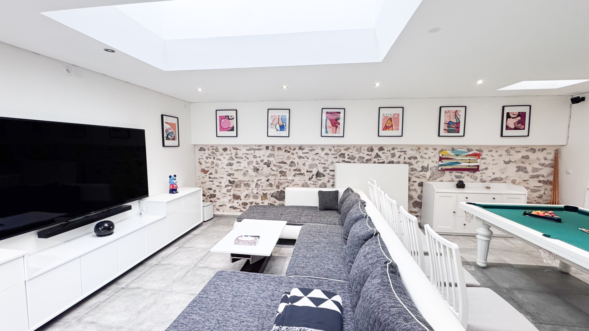 Un couloir avec rangements intégrés ainsi qu'une buanderie avec WC viennent compléter l'agencement.
