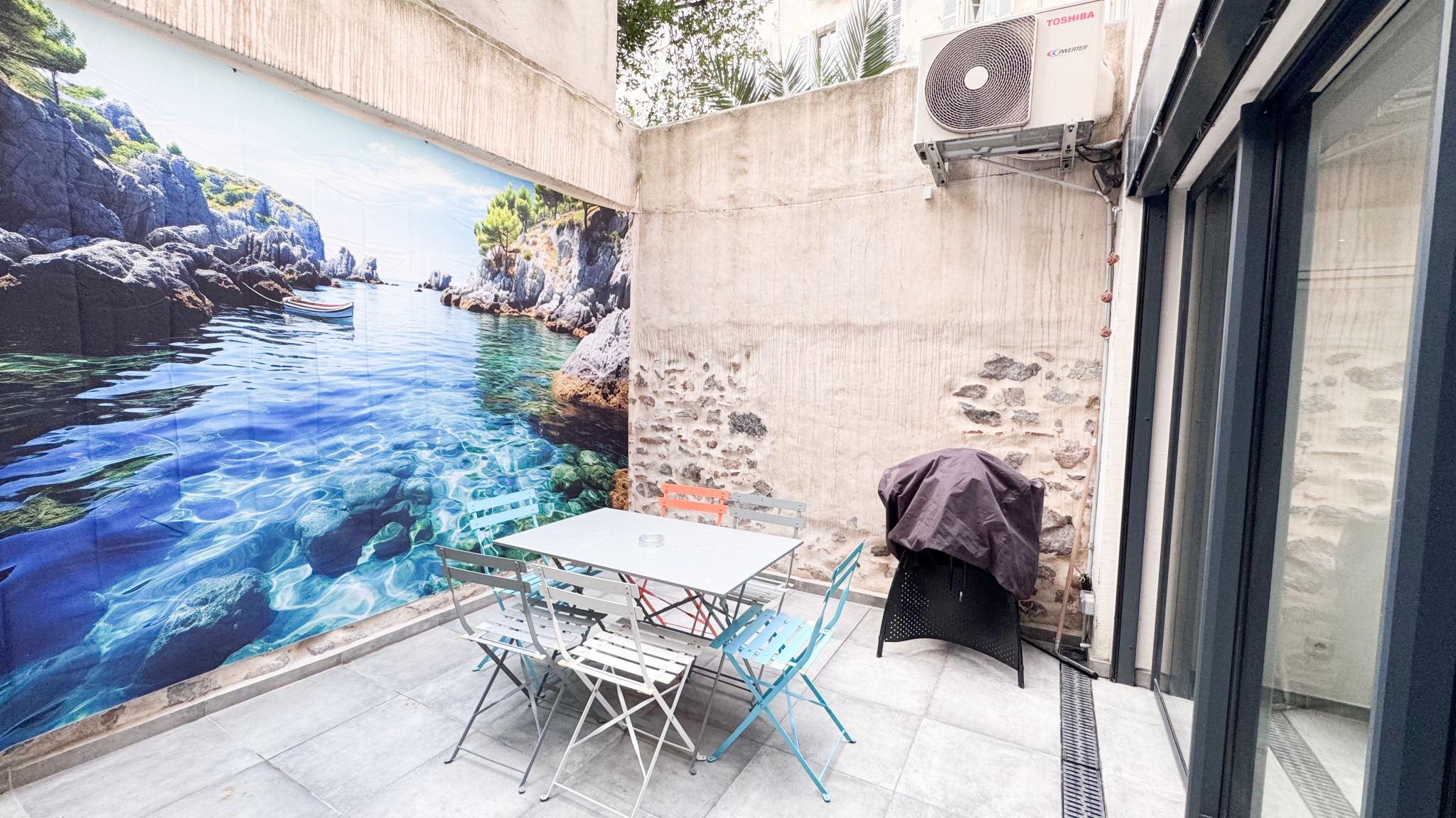 À l'extérieur, un agréable coin terrasse d'environ 10 m2 prolonge l'espace de vie. Prestations premium, climatisation réversible, rénovation récente et mobilier de qualité, aucun travaux à prévoir.