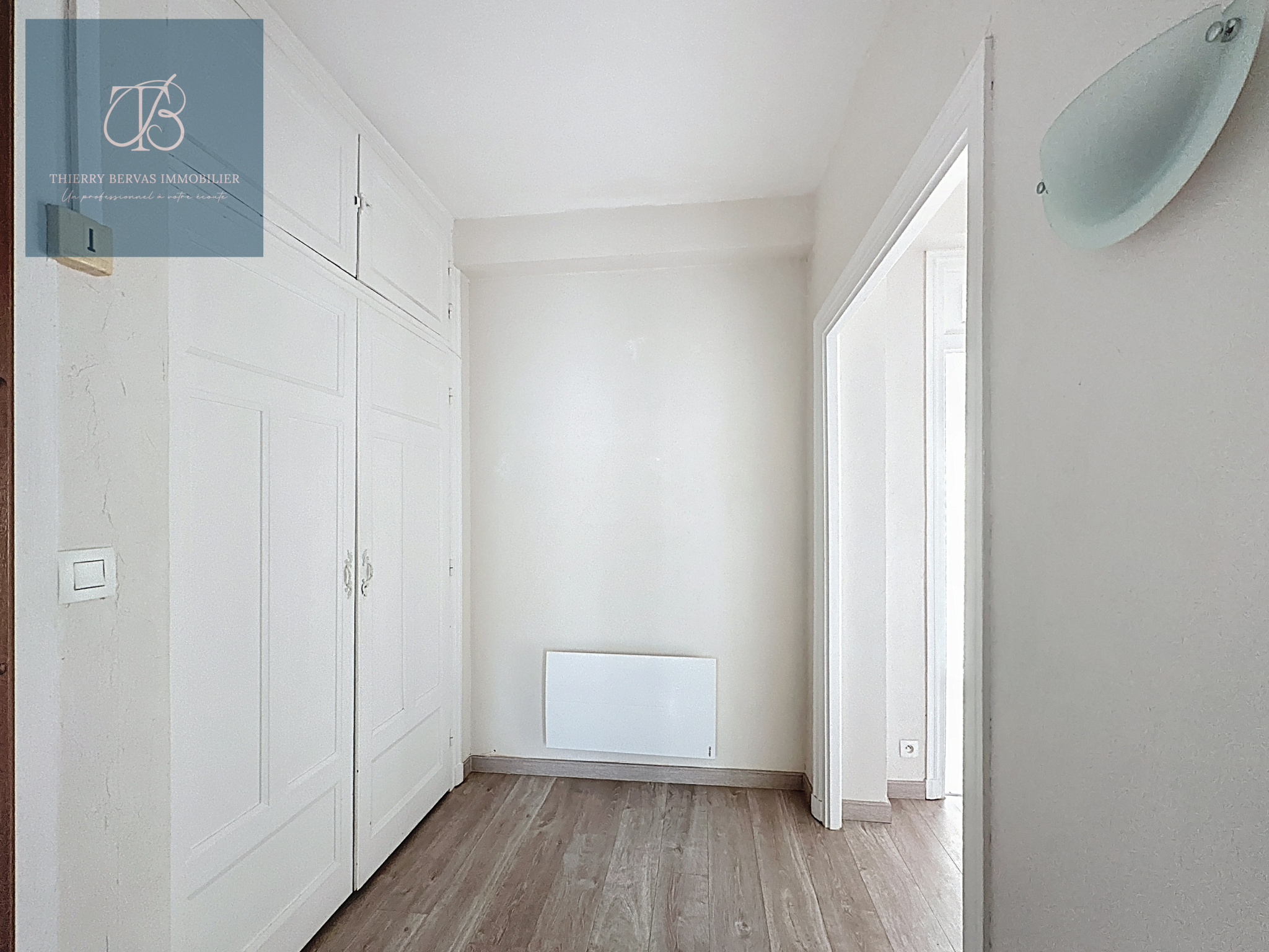 La belle hauteur sous plafond souligne le cachet du bien. Un hall d'entrée avec placard distribue harmonieusement une cuisine indépendante, des WC séparés, puis un dégagement menant au séjour, aux deux chambres et à la salle d'eau.
