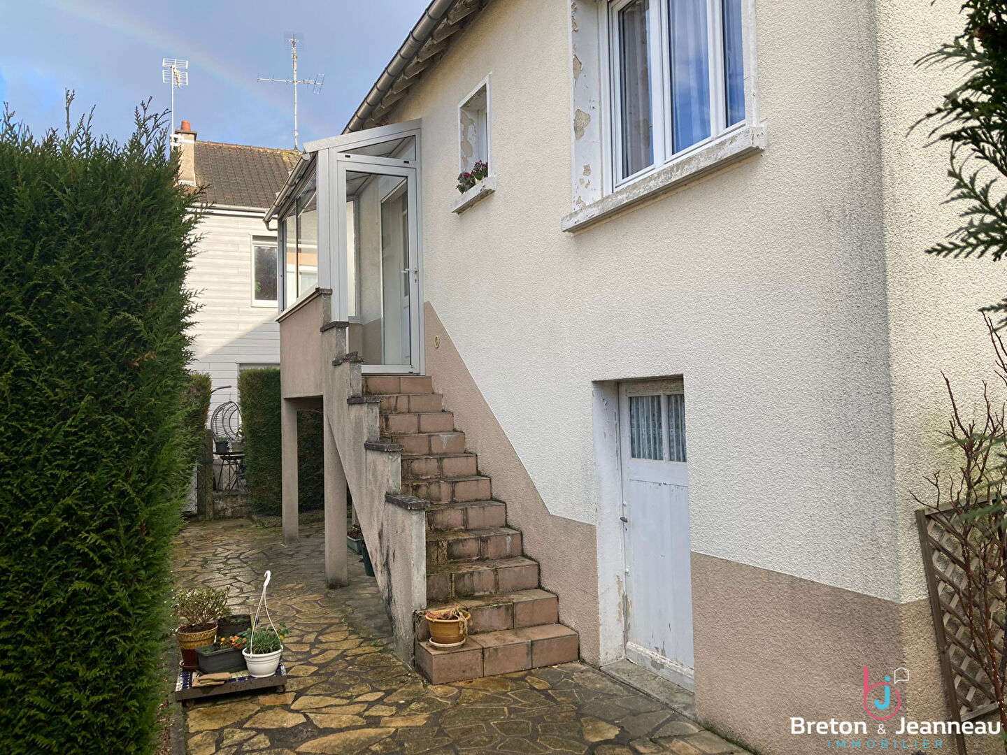 Charmante maison des années 60 en très bon état offrant au rez-de-chaussée surélevé un sas d'entrée, un séjour lumineux avec parquet ancien, une cuisine meublée accès jardin, deux chambres.