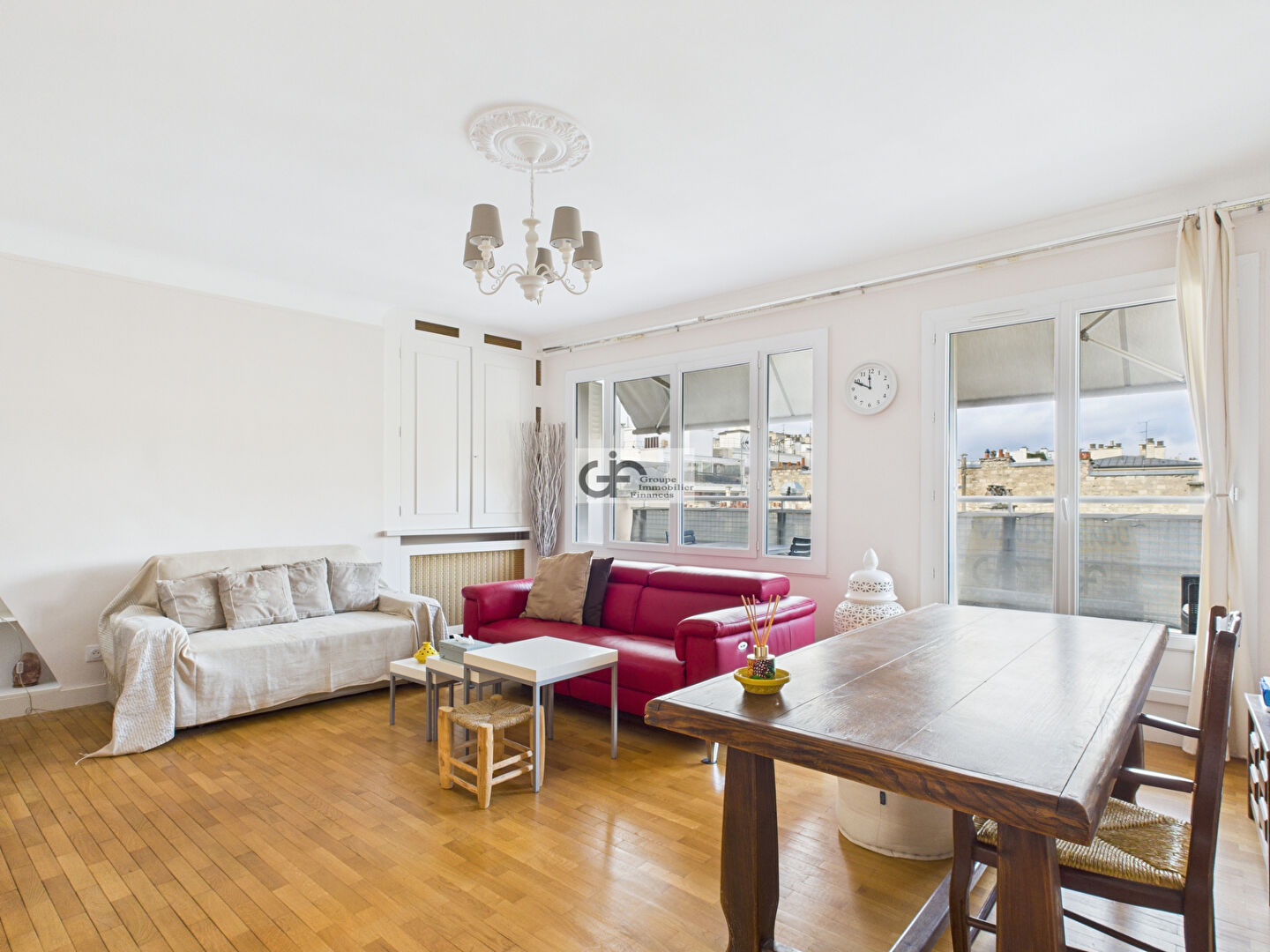 Le séjour s'ouvre sur un large balcon avec vis à vis dégagé, tandis qu'un 2éme balcon est accessible coté chambre.