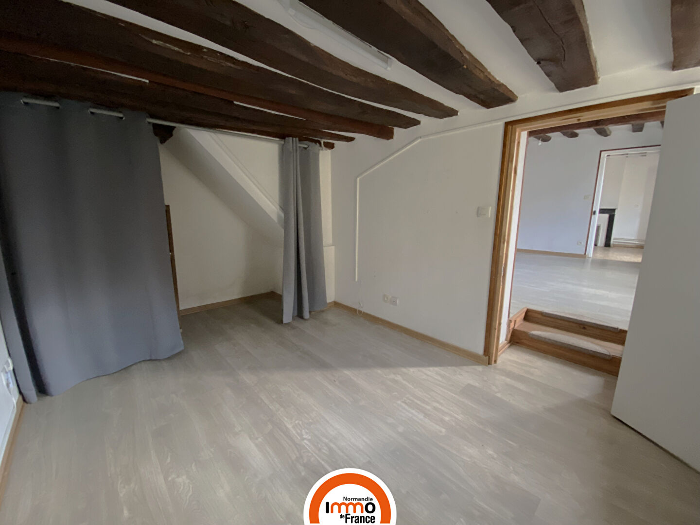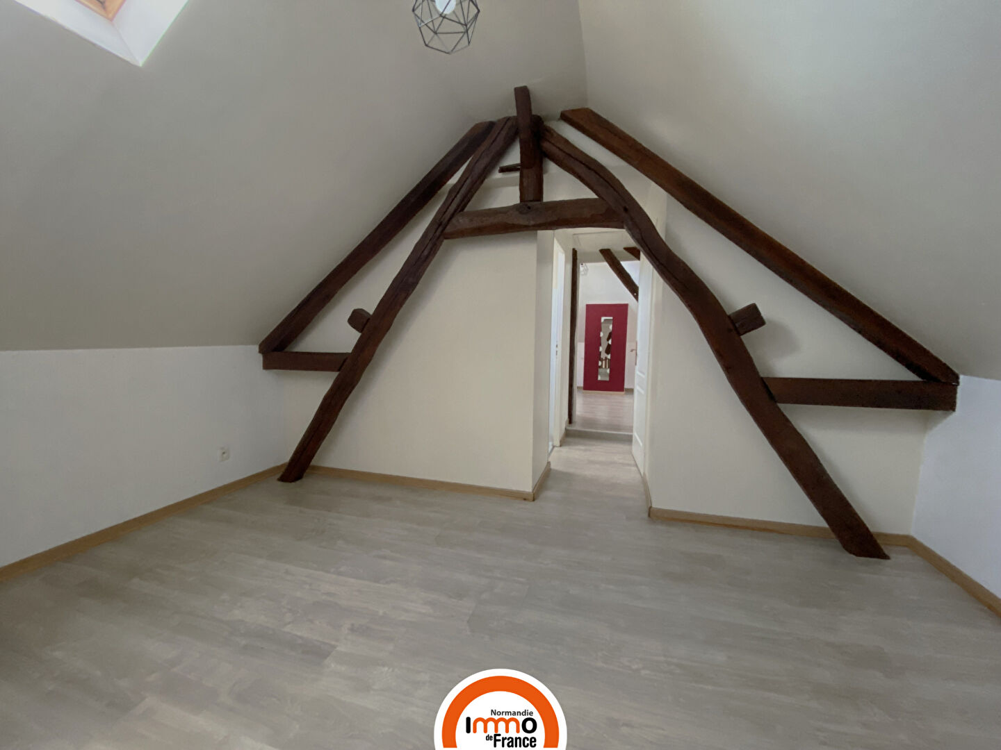 À l'étage, l'espace nuit se compose d'un grand palier desservant une première chambre, une salle de bains, un WC séparé et une dernière chambre.