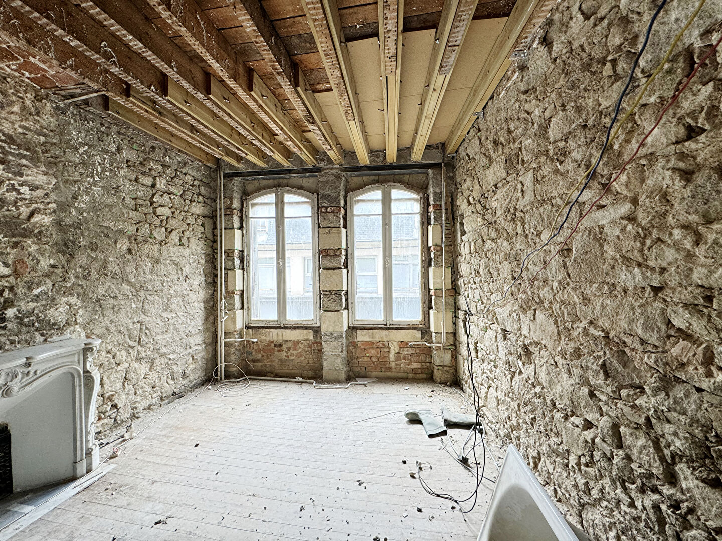 A VENDRE, SAINT-BRIEUC CENTRE, rue piétonne, partie d'immeuble en pierre, comprenant 3 étages + combles + dépendance sur cour, possibilité aménagement de 4 appartements ; TRAVAUX DE REHABILITATION A PRÉVOIR, PERMIS DE CONSTRUIRE OBTENU, IDÉAL INVESTISSEURS, BONNE RENTABILITÉ POSSIBLE.