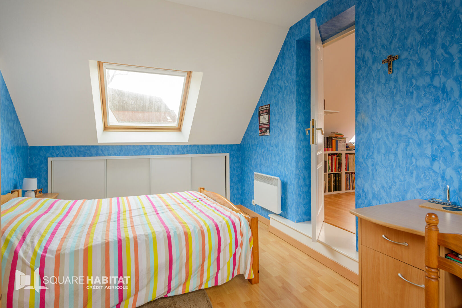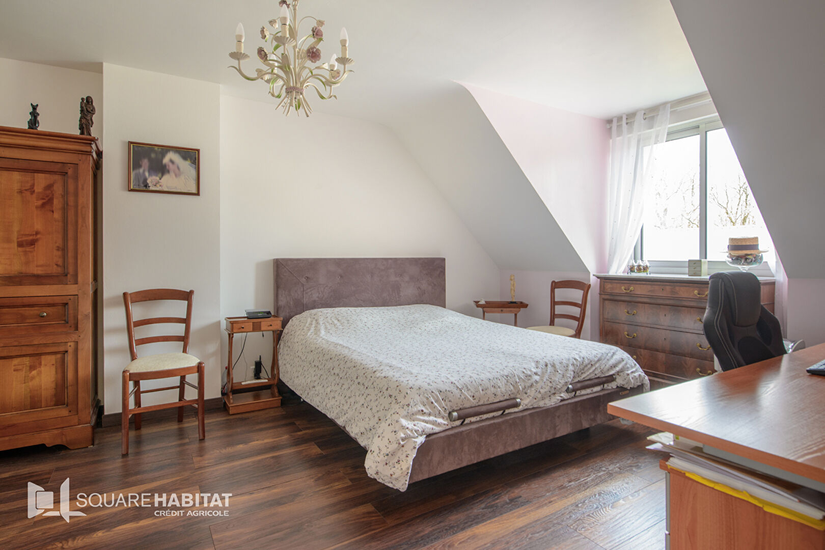 À l'étage, un dégagement dessert quatre chambres (dont une pouvant faire office de bureau) et une salle de bains avec WC.