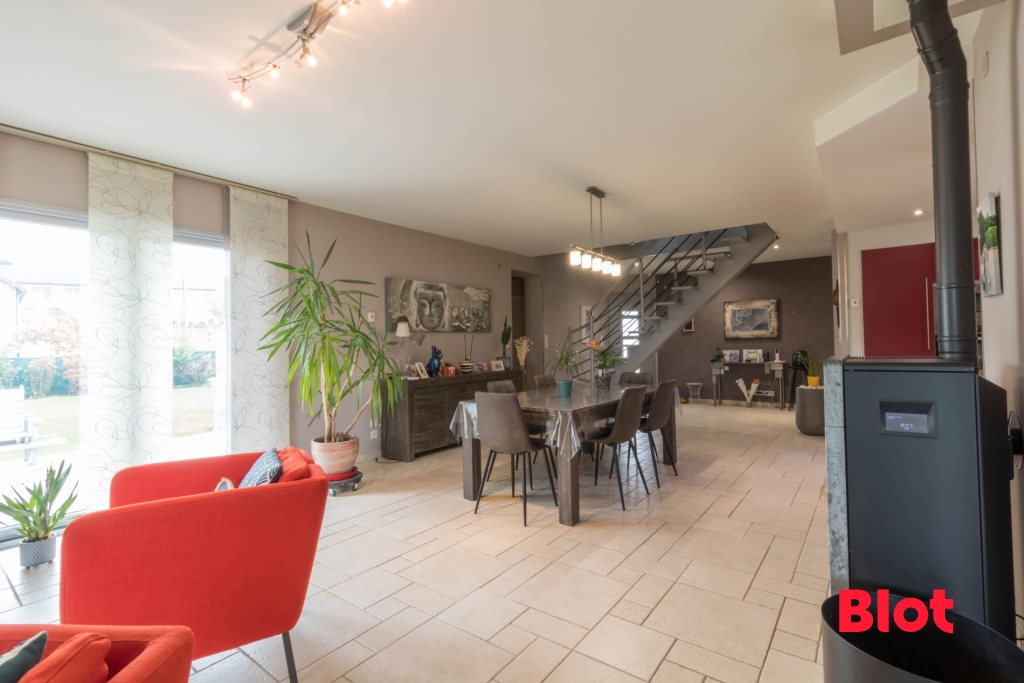 Située au cœur de la commune d' ANTRAIN VAL/COUESNON sur une parcelle de 4 363 m², vous serez séduit par cette maison contemporaine de 245 m² composée d'une entrée avec placards, un salon séjour avec poêle à pellets, une cuisine aménagée donnant sur l'arrière cuisine et l'accès au double garage. Un grand salon très lumineux, espace de détente avec une chambre au-dessus. Le rez-de-chaussée est complété par une chambre, WC indépendant et une salle d'eau.