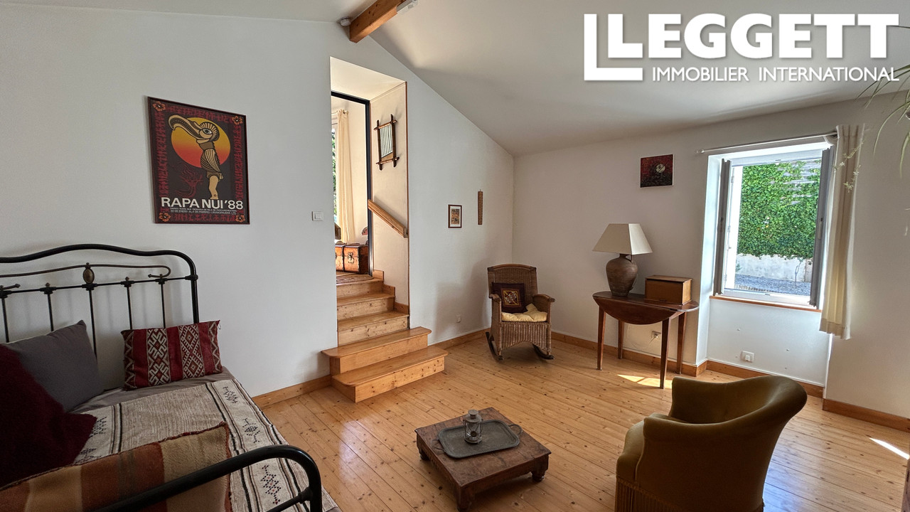 A42402FAL85 - À 10 min des plages vendéennes, à 20 min de Luçon, située en coeur de bourg de Grues (commerce de proximité), venez découvrir cette charmante maison en pierre construite en 1949 de 91 m² habitables, avec un terrain de 387 m² et un jardin en hauteur avec vue magnifique sur le village. Celle-ci présente actuellement : une petite véranda donnant sur la cuisine aménagée, équipée aussi d'un insert bois. Un salon ,suivie d'une chambre avec mezzanine, un bureau et une salle d'eau avec WC. La maison offre aussi une chambre indépendante avec salle d'eau. À l'extérieur, magnifique terrasse en bois et un abri de jardin en bois. Maison à usage familial ou secondaire pour les vacances ou primoaccédant.
