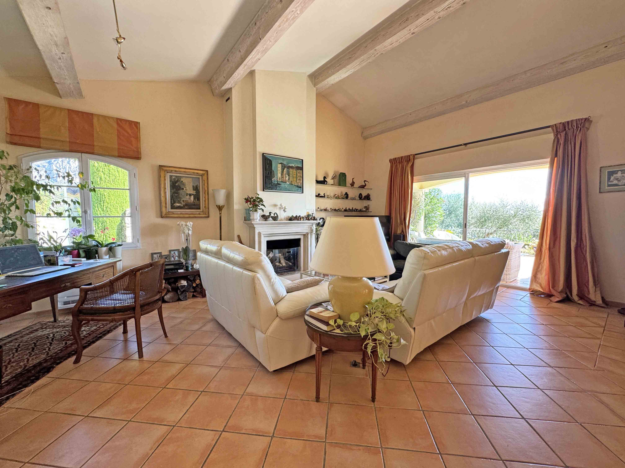 OFFRE ACCEPTEE - Située dans un domaine fermé, au calme et proche du centre de Vence, villa provençale de 180 m2 comprenant un séjour avec cheminée de 59 m2, cuisine équipée, bureau, chambre avec dressing et salle de douches, chambre avec salle de bains, 2 chambres, salle de douches, buanderie. Vue dégagée jusqu'à la mer. Terrain de 2.000 m2 avec piscine chauffée, terrain de pétanque, garage et abri voitures.
