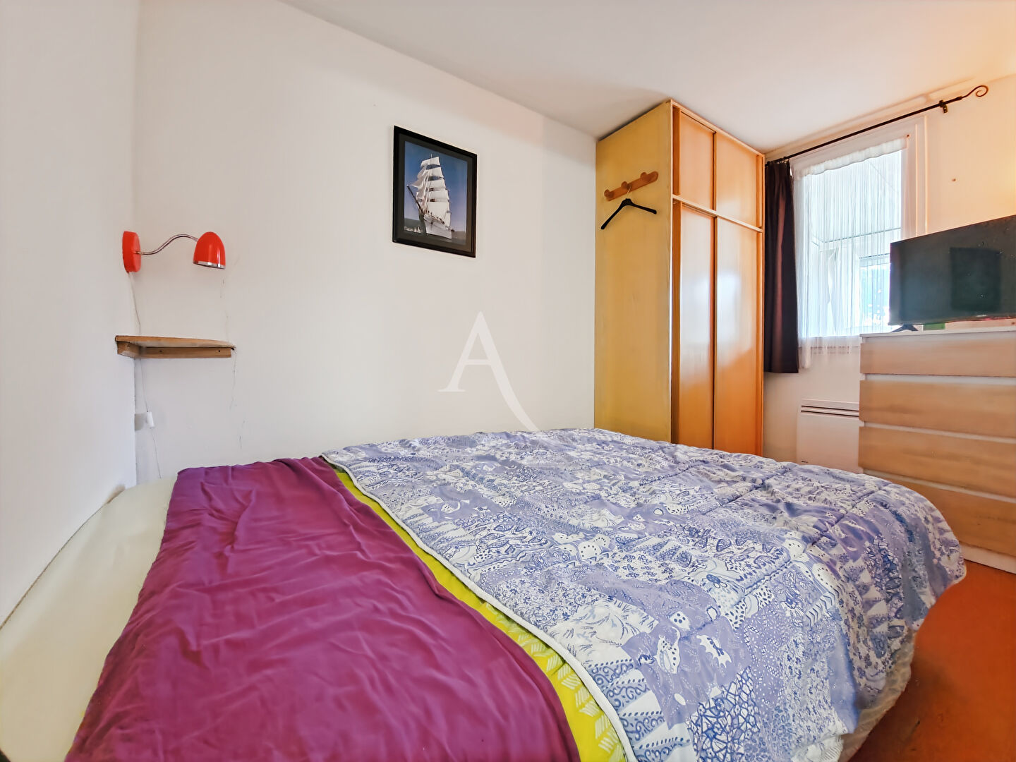 Véranda récente avec ses baies coulissantes donnant un accès sur le jardinet exposé SUD. Séjour avec coin cuisine aménagé et équipé. Baie à galandage. Petite chambre meublée. En mezzanine, un coin couchage et un autre de rangement. Parking privé.