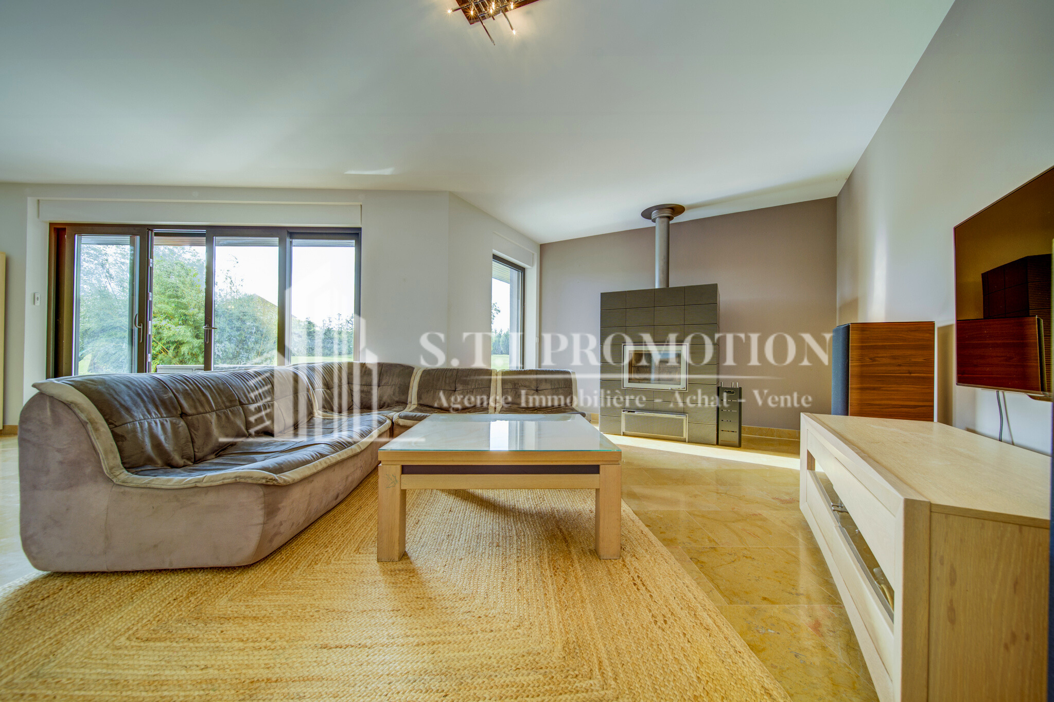 Dès l'entrée, une vaste pièce de 26 m2 annonce les beaux volumes de la maison et invite à la découverte. Le séjour de plus de 50 m2, baigné de lumière, offre une ambiance chaleureuse et conviviale, sublimée par un poêle à bois Tulikivi haut de gamme, idéal pour les soirées cocooning. La cuisine ouverte, entièrement équipée et fonctionnelle, est complétée par une seconde cuisine indépendante, très pratique au quotidien ou pour recevoir. L'ensemble s'ouvre sur une grande terrasse carrelée avec jacuzzi, parfaite pour profiter des beaux jours dans un cadre intimiste et verdoyant.