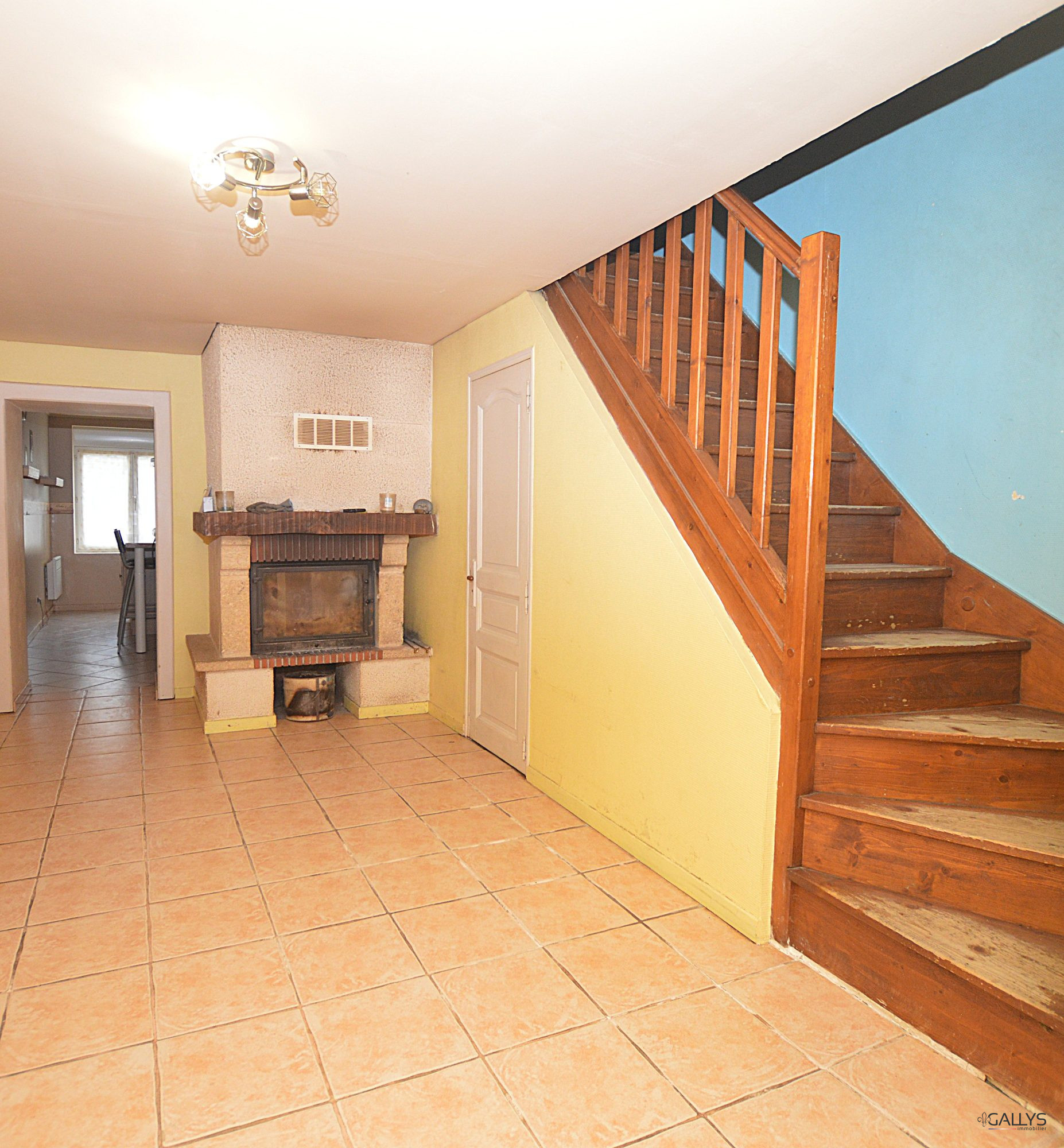 Au rez-de-chaussée, vous trouverez une entrée d'environ 6 m², menant à un séjour de ± 26 m², équipé d'une cheminée à bois et d'une porte-fenêtre donnant accès direct au jardin.