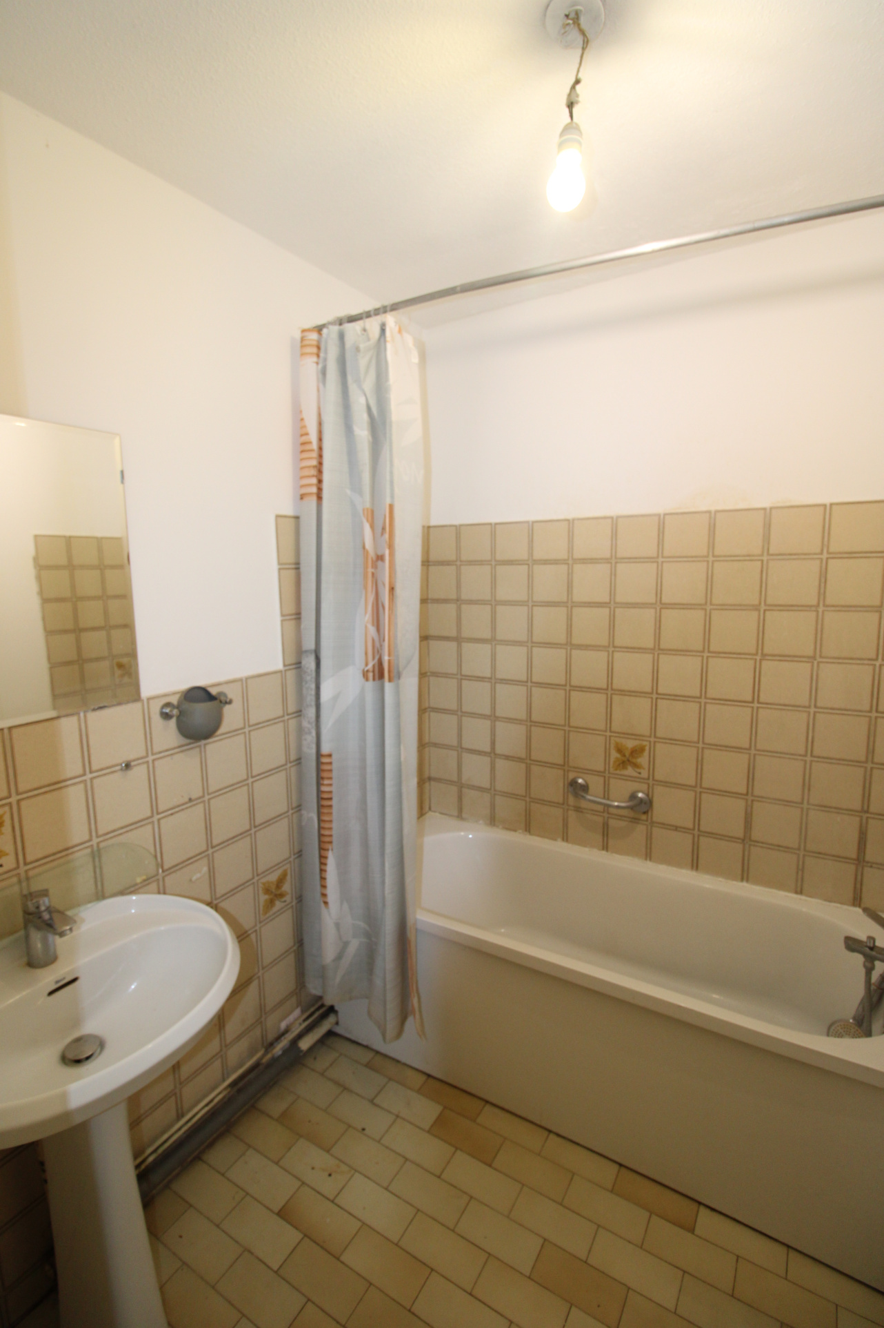 Appartement de type faux T4 au 1er étage, comprenant : entrée, salle à manger / séjour donnant sur balcon de 12.43 m2, cuisine avec balcon de 2 m2, deux chambres, cellier, salle de bains et wc.