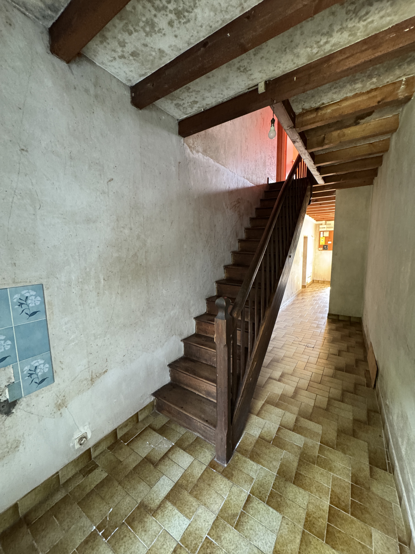 REIGNAC (16) - Entre Barbezieux et Baignes, maison mitoyenne à rénover, située en bordure de l'ancienne nationale. Entrée traversante sur escalier, salle d'eau avec wc, grand séjour et grande cuisine en enfilade qui s'ouvrent à l'arrière sur une terrasse. Terrain de 550 m2 arboré avec annexes à l'abri des regards. À l'étage, trois chambres et grenier. Il est possible d'acquérir plus de terrain attenant ainsi qu'une autre maison, indépendante, actuellement occupée par un locataire.