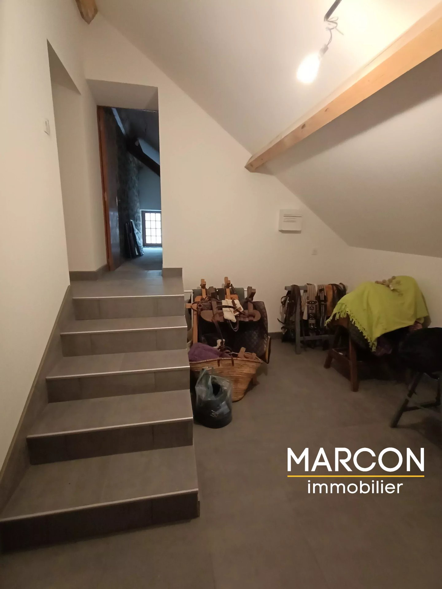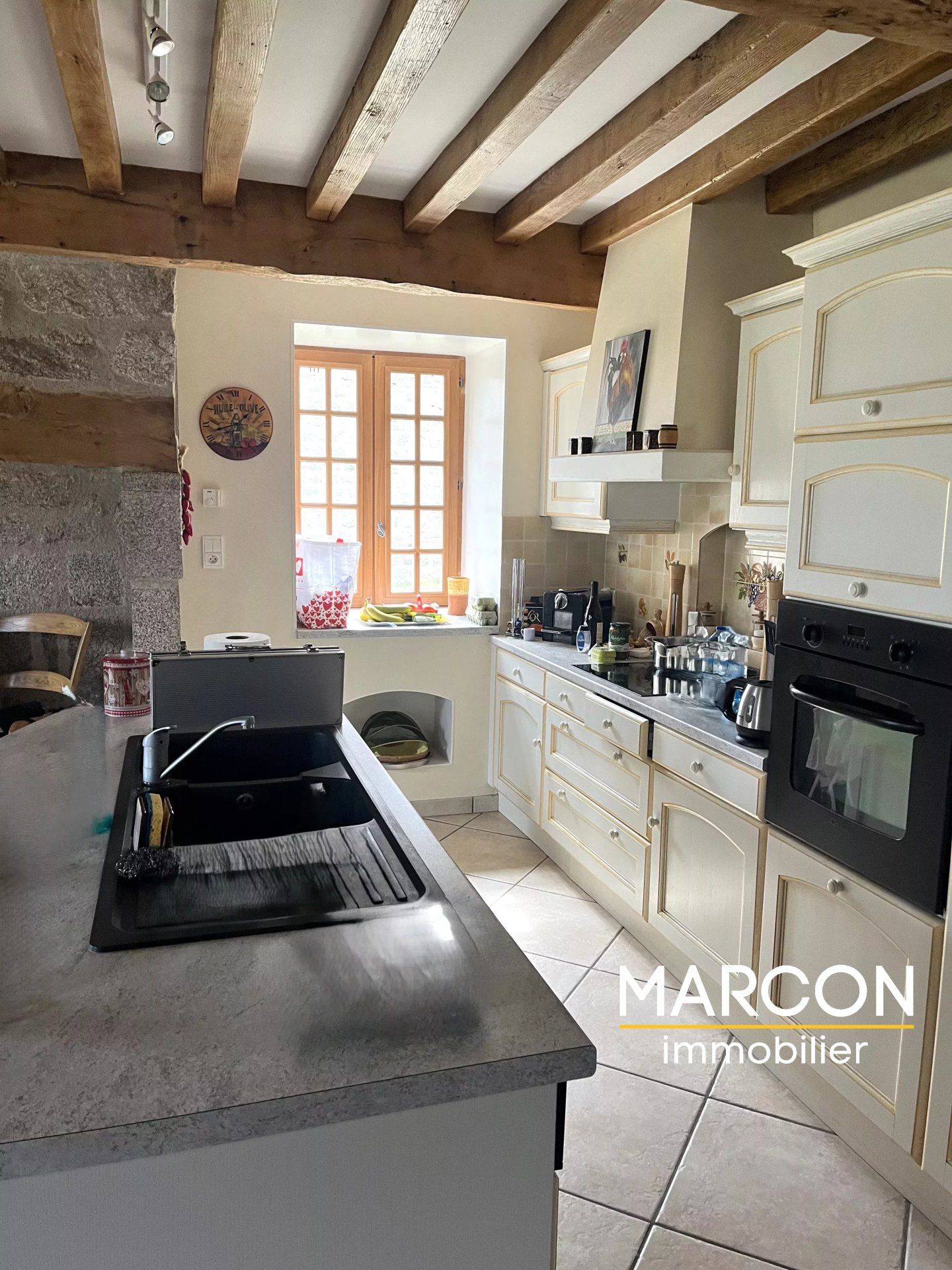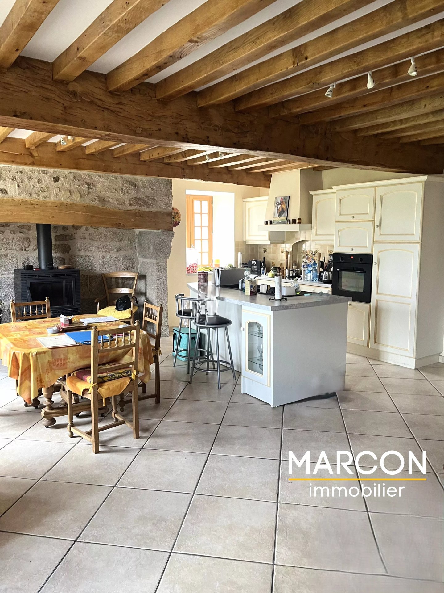 MARCON Immobilier vous propose une maison de 144 m² située dans un hameau calme comprenant en rez-de-chaussée : entrée, cuisine équipée - salle à manger, salon, salle d'eau, wc.