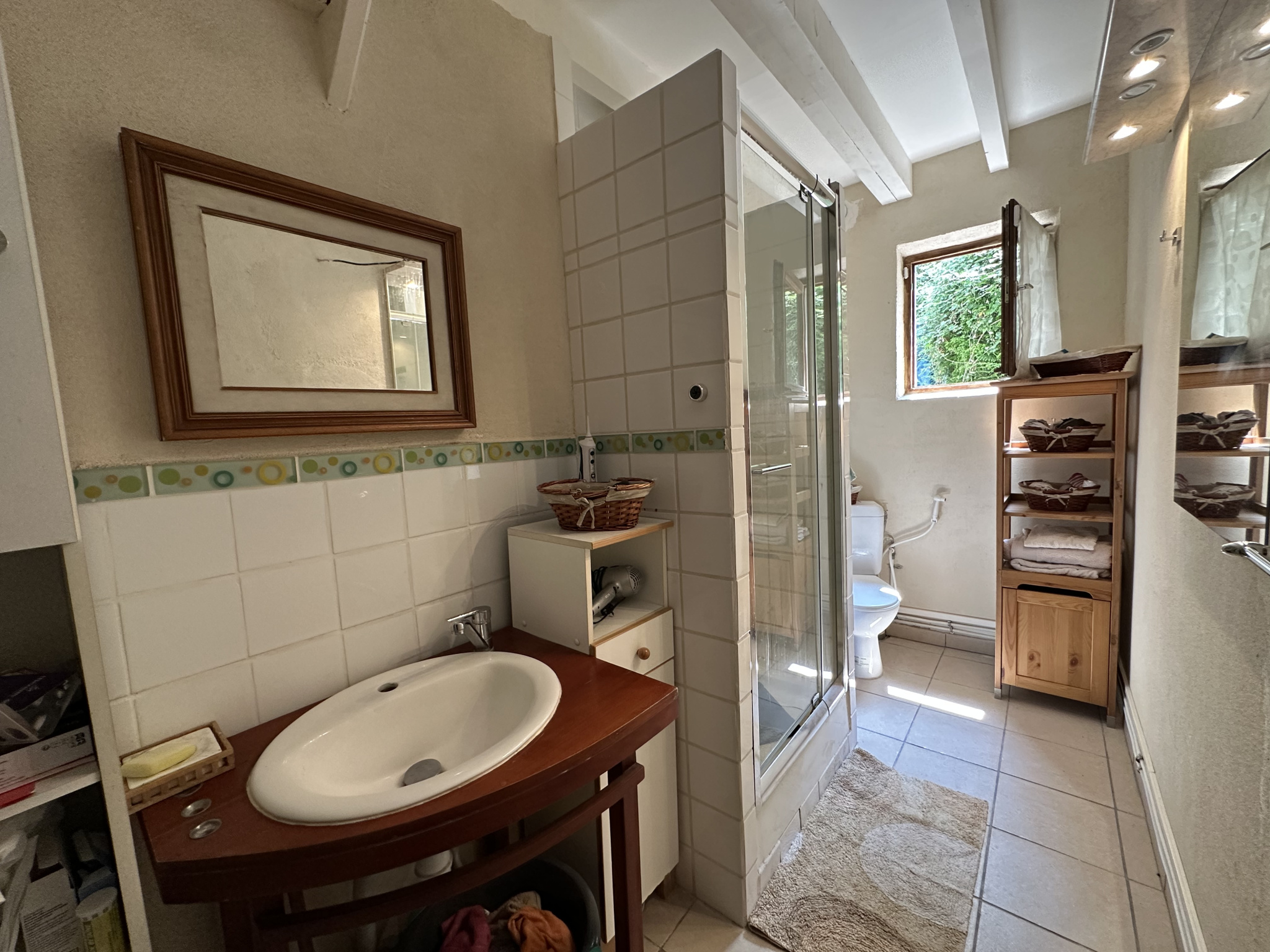 Au rez-de-chaussée, grande pièce de vie de plus de 40 m2 avec cuisine aménagée et équipée. La salle d'eau avec wc.