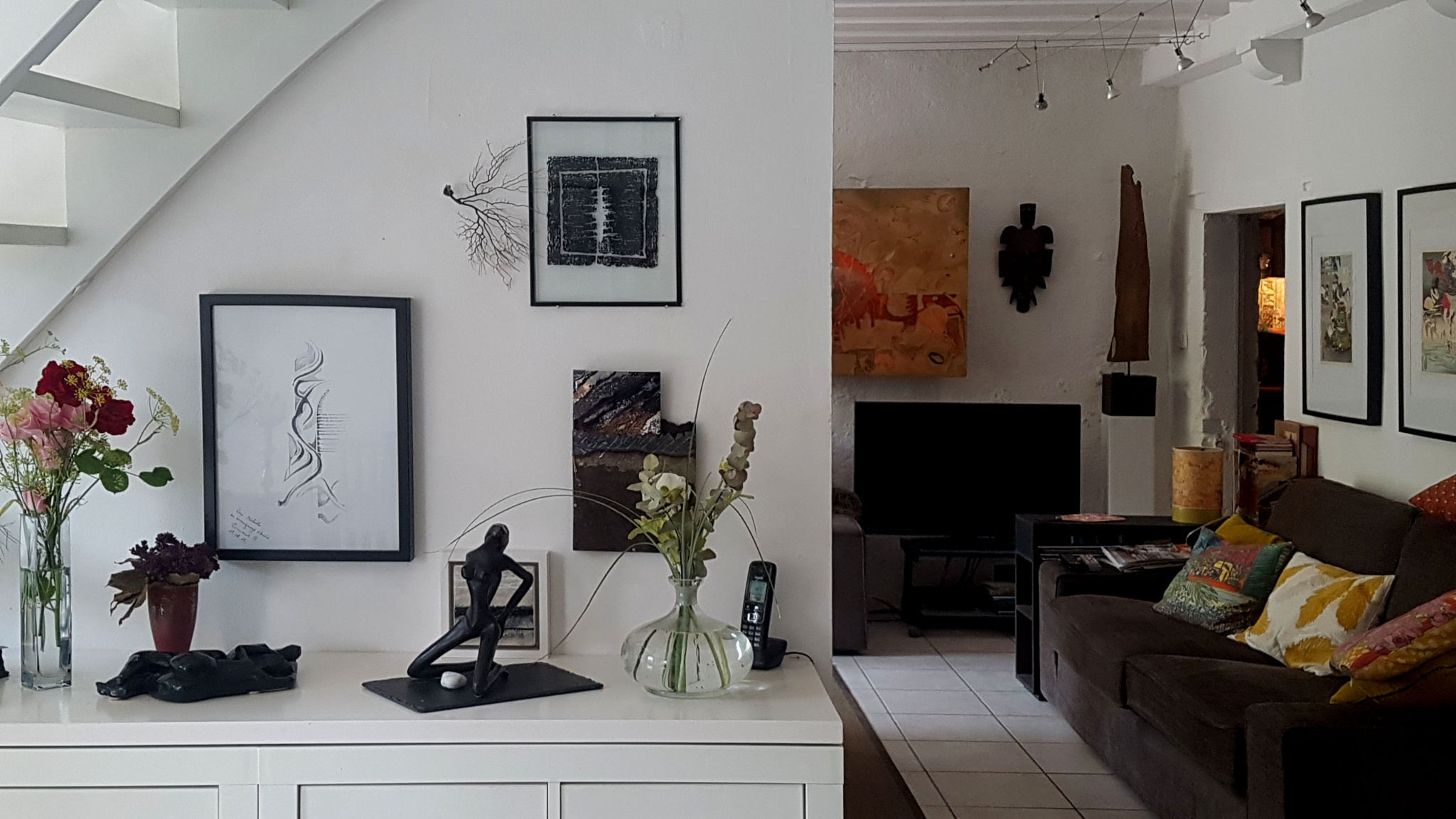 L'escalier vous mène à un bureau - bibliothèque, une chambre, un wc.