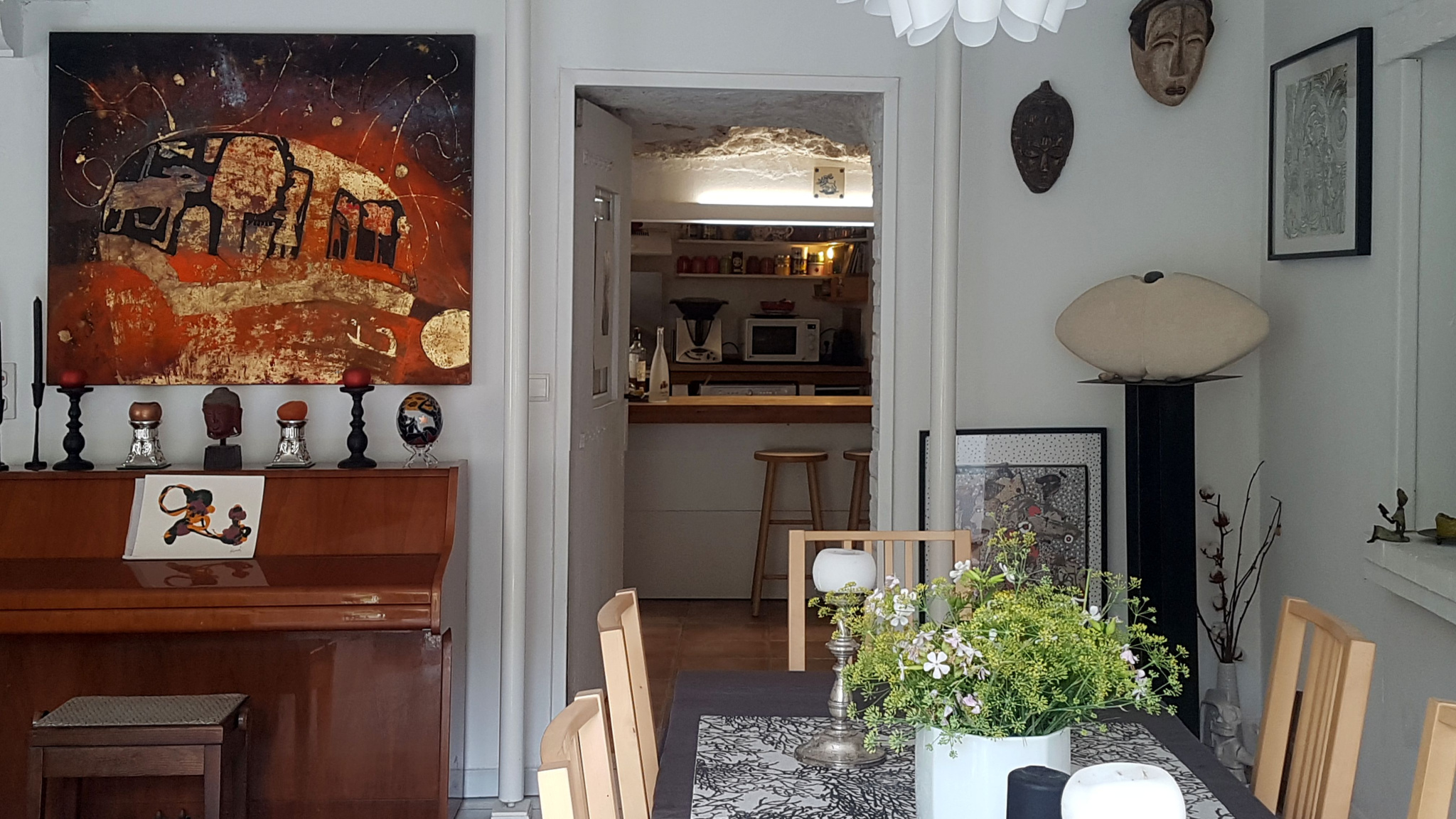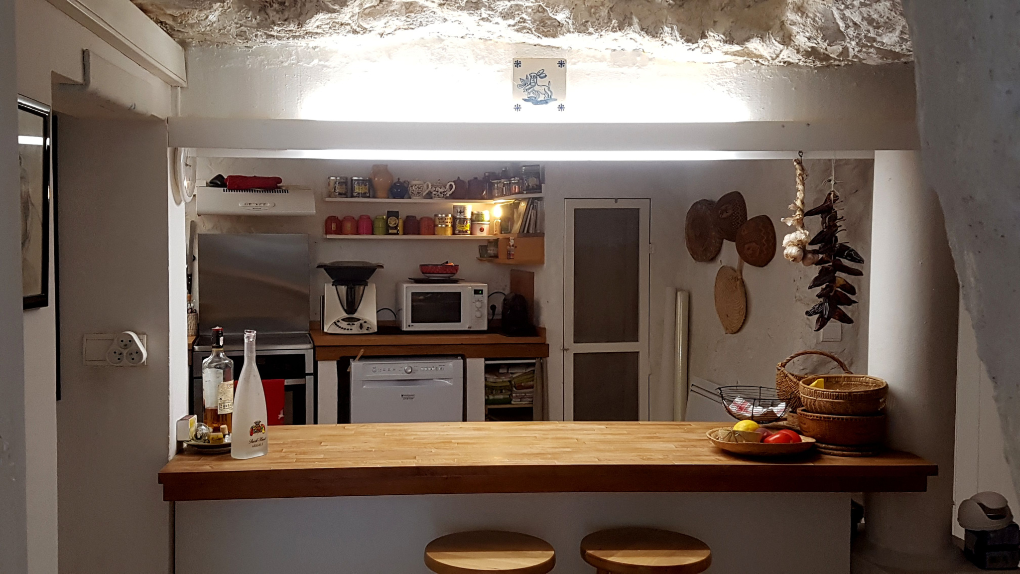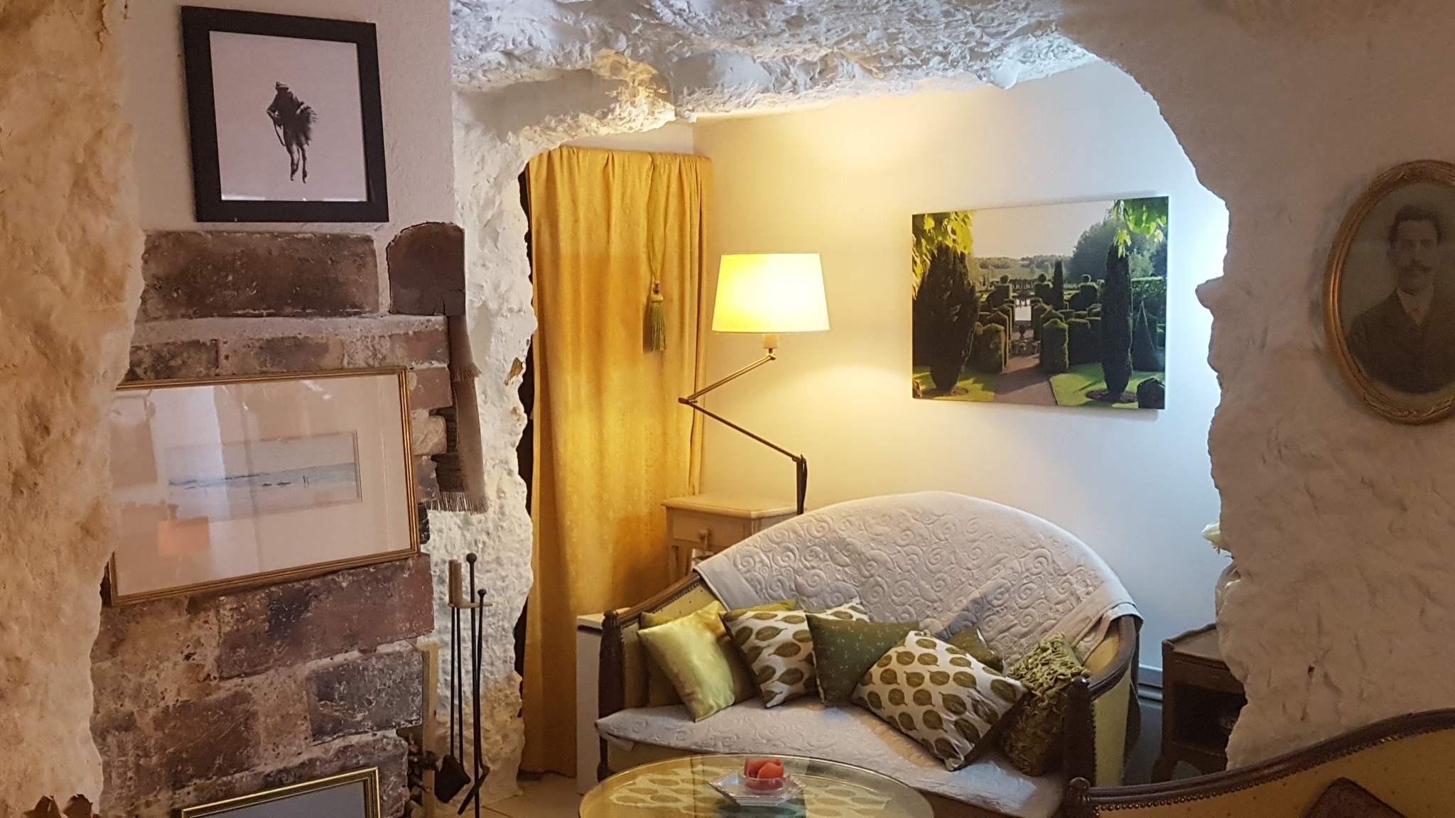 Surplombant la vallée du Loir par son terrain buccolique de 1100m2 cette demeure vous accueille avec une terrasse qui s'ouvre sur une salle à manger jouxtant un salon lumineux, sous la roche un autre salon équipé d'une cheminée se fait jour. Puis, nous poursuivons avec une cuisine a/é, une salle d'eau, wc, buanderie.