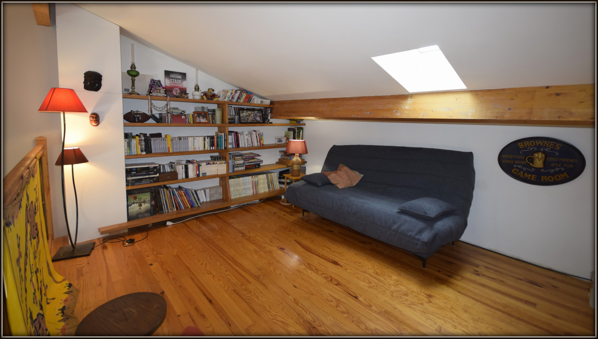 Vaste séjour avec plafond cathédrale, cuisine équipée, 3 chambres et deux salles d'eau, une buanderie, un cellier et un wc séparé.