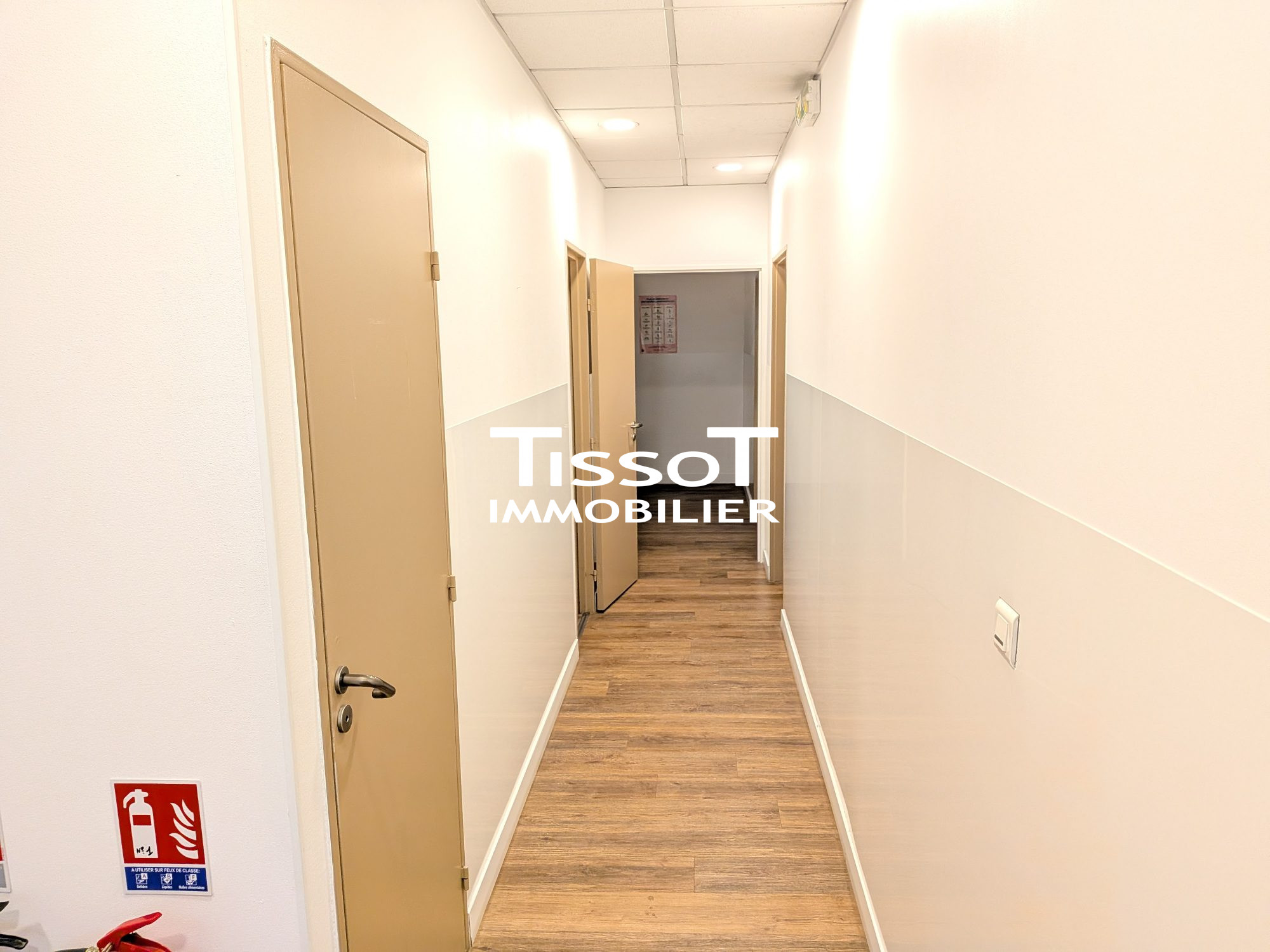 Situé au 1er étage de l'immeuble, ce plateau de bureau de 101 m² dispose d'un accueil, de deux salles d'attente, de trois bureaux d'environ 16m² chacun, une kitchenette et un WC.