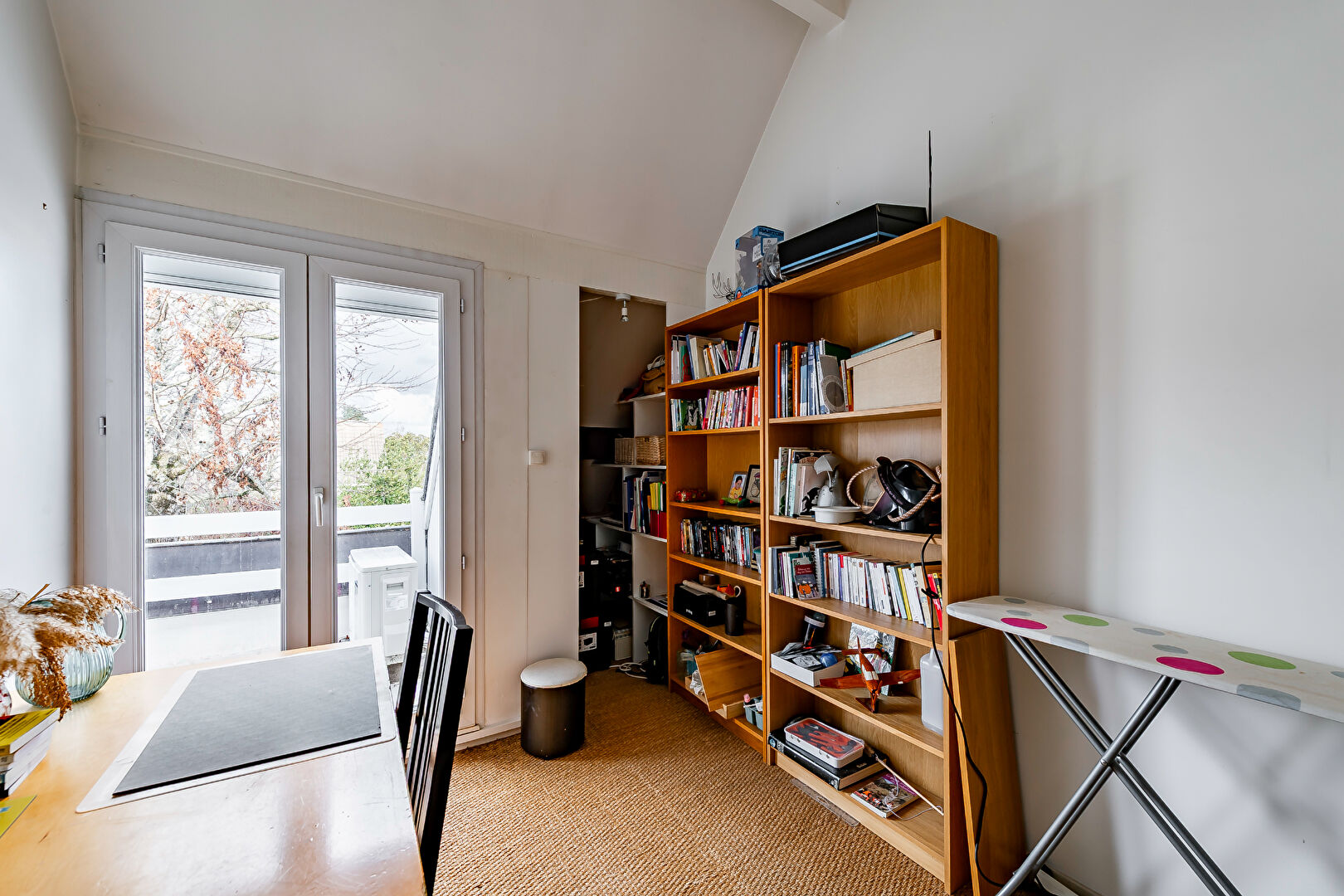 À l'étage, vous trouverez deux chambres dont une avec balcon, un bureau, ainsi qu'une salle d'eau avec WC.