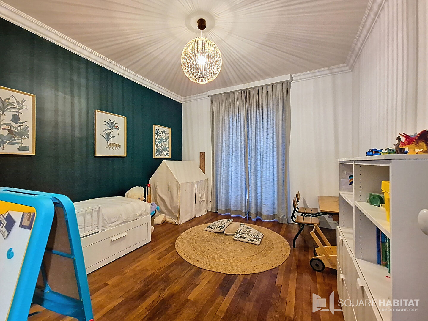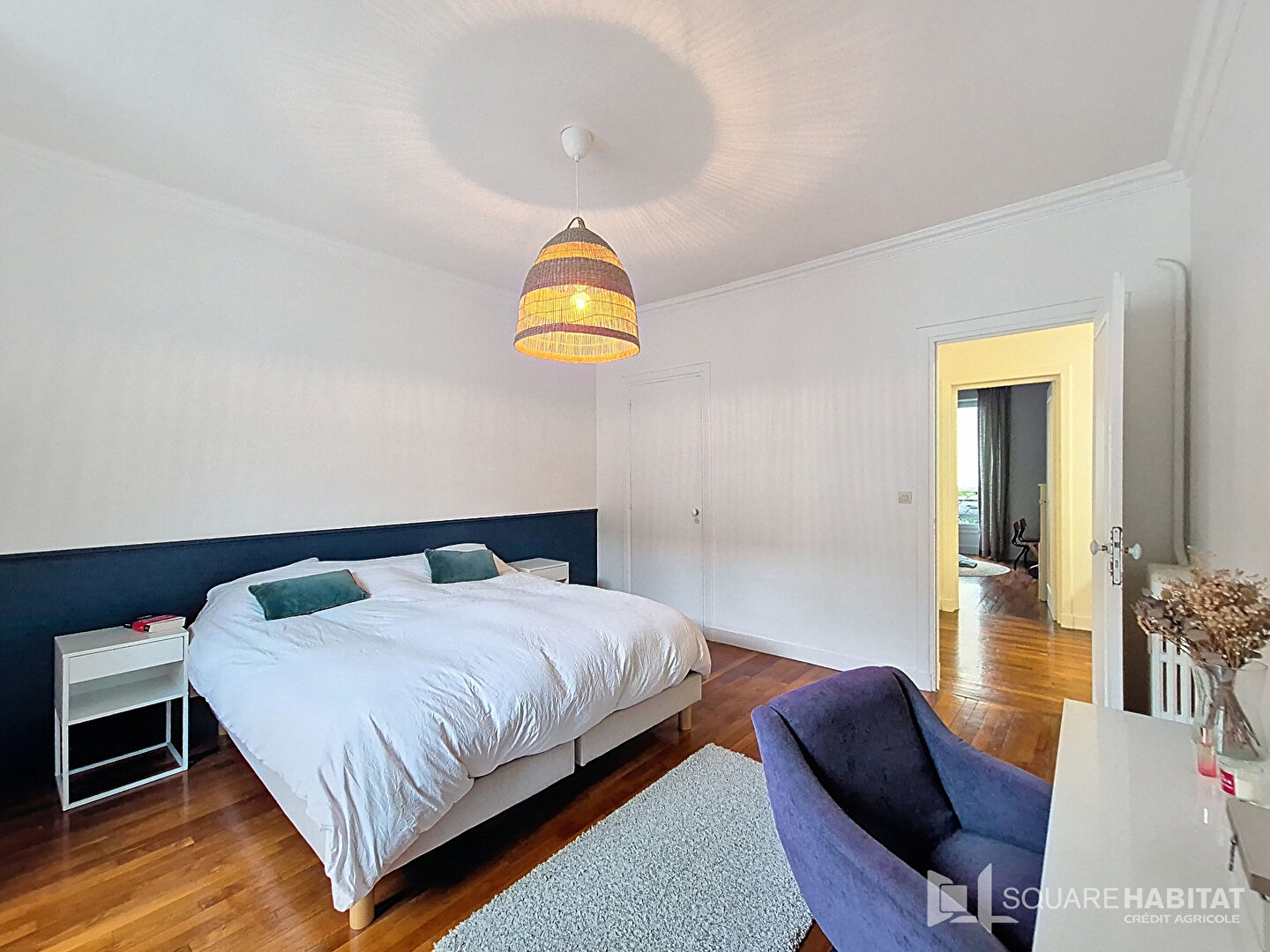 Baigné de lumière grâce à son exposition sud et ouest, il offre un magnifique salon-séjour de 55 m², sublimé par un parquet en chevron et une belle hauteur sous plafond de 2,90 m, conférant à l'ensemble un cachet exceptionnel. Le logement se compose : d'une entrée avec placard, d'un vaste salon-séjour aux volumes remarquables, d'une cuisine récente façon atelier, aménagée et entièrement équipée, d'une chambre de 17m2 avec salle d'eau privative, de trois chambres supplémentaires de plus de 13.50m2, d'une grande salle de bains, de WC séparés, d'un vestibule avec dressing intégré de 2,50 m.
