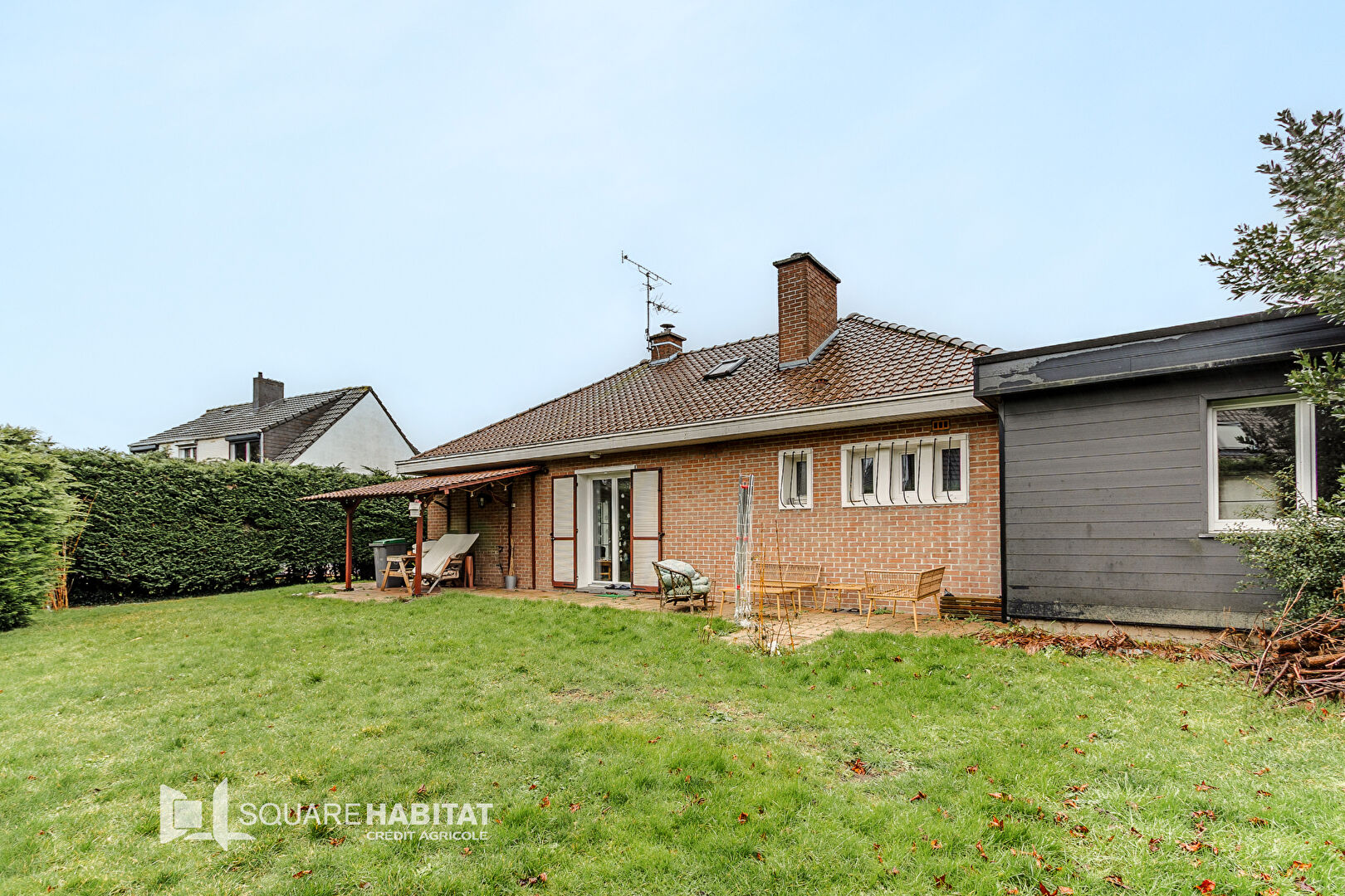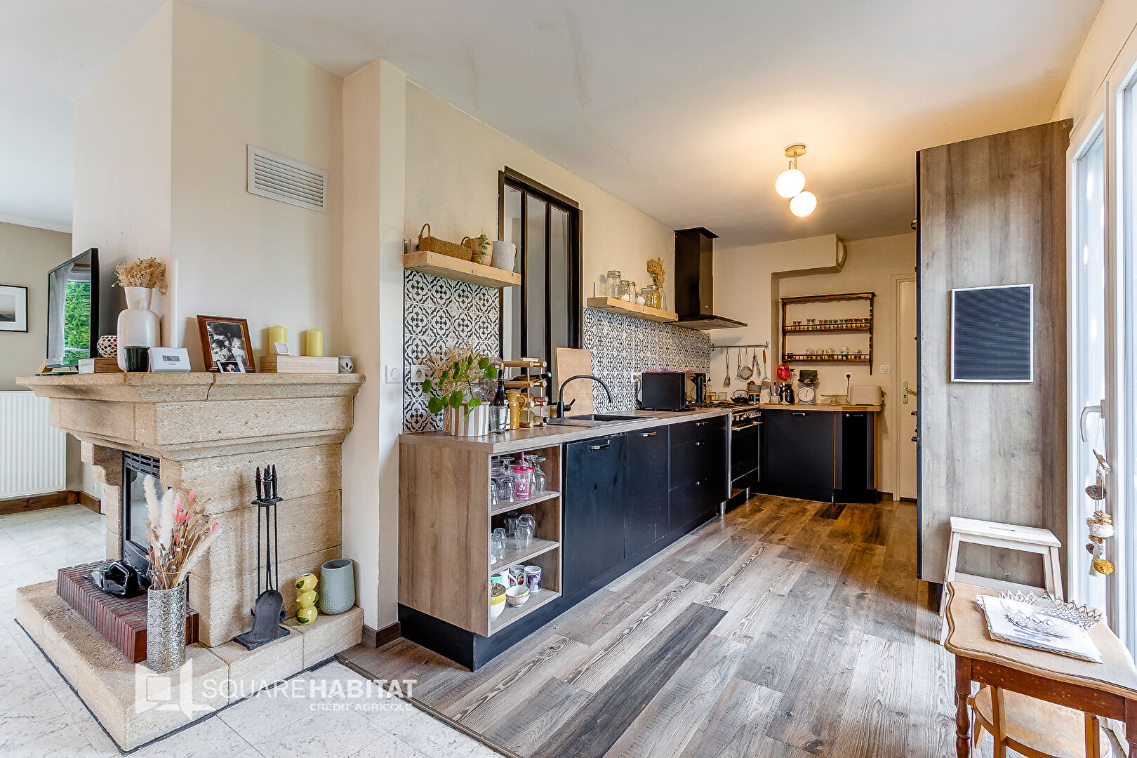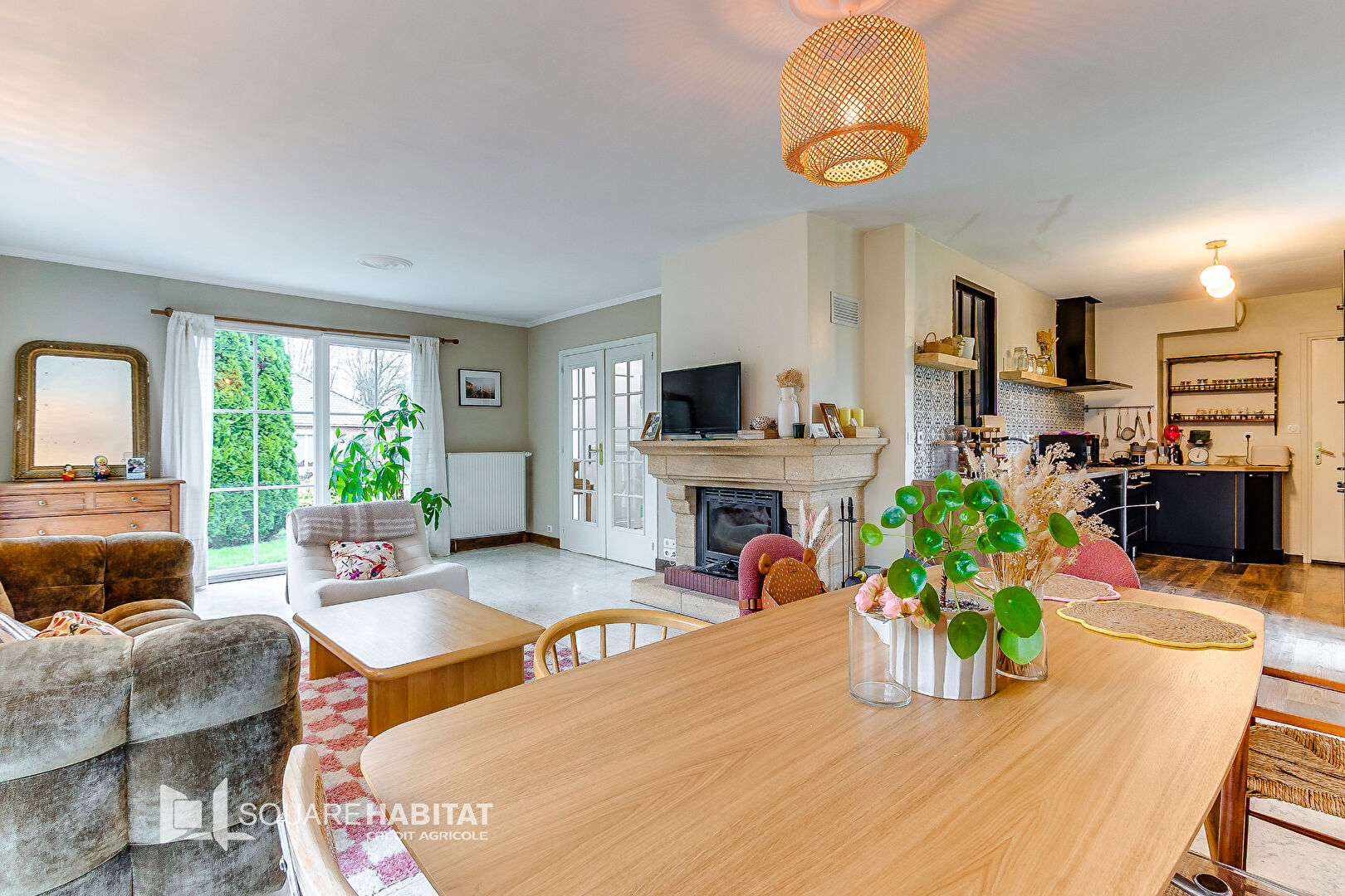 Maison semi-plain-pied érigée sur une parcelle de plus de 700m², offrant une pièce de vie lumineuse et une cuisine équipée, toutes deux avec accès au jardin clos et arboré.