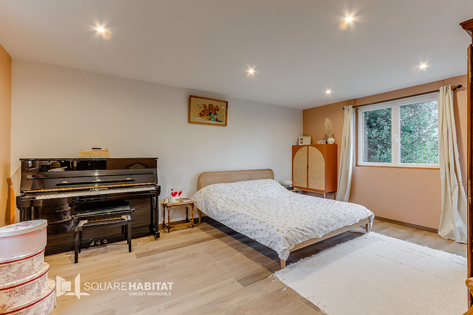 Elle dispose de 3 chambres dont une de 21 m², d'une salle de bain, au rez-de-chaussée.