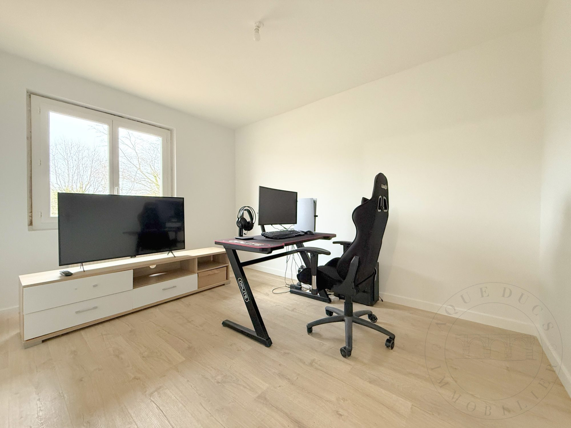 Le rez-de-chaussée propose un second espace de vie complet avec une entrée indépendante, un vaste salon séjour, une cuisine meublée et semi-équipée, une chambre, une buanderie, un dégagement ainsi que des toilettes séparées. Cet agencement offre de nombreuses possibilités, que ce soit pour accueillir un proche, créer un espace professionnel ou simplement profiter de volumes généreux.